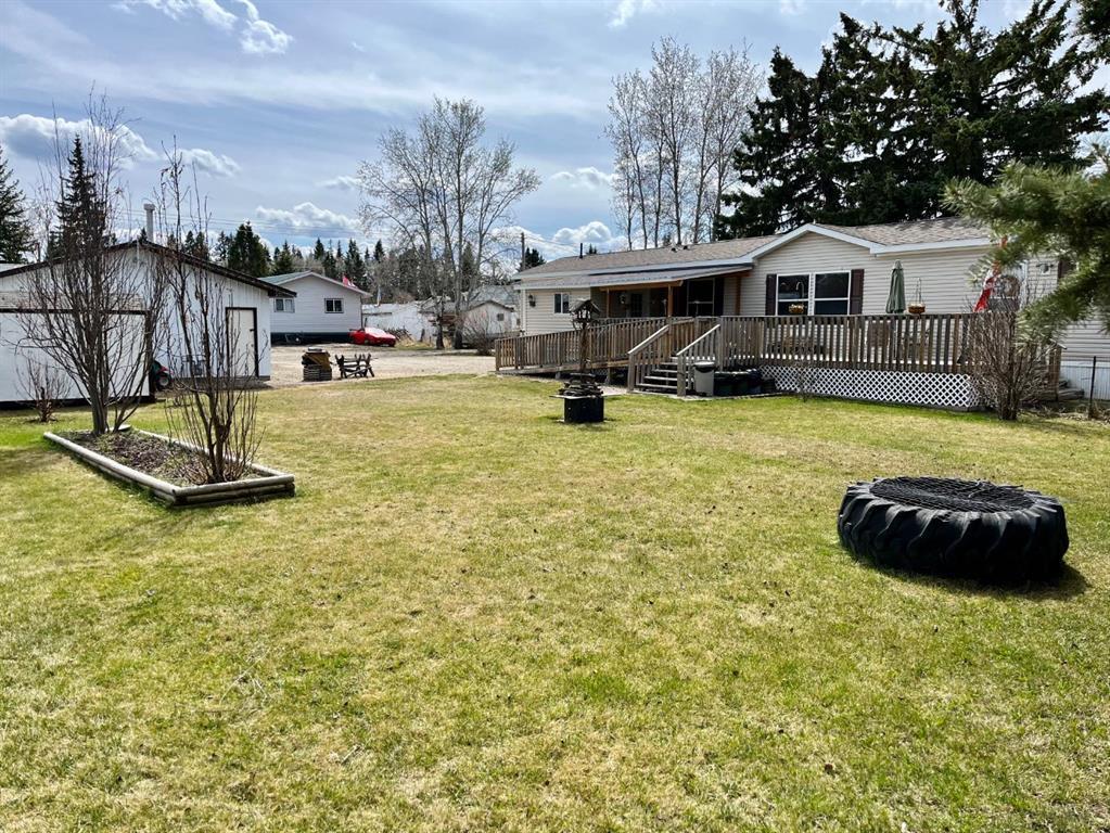 2010 modular home, original owner of home moved it onto a double lot in Leslieville in 2011. The lot is 100X150 which has a double insulated garage 24X26 with 2-220 outlets, shelving and workshop. The existing drilled well is contained in the pump house (new pressure tank & pump) and the shed is 8X12. The mobile pad was built solid with a lot of gravel complete with a moisture barrier on top, the mobile is anchored in 6 places-as per CSA standards. The mobile has a porch addition 10X12 which is insulated & the dog run is to the north. The 10X41 pressure treated deck with ramp allows for wheel chair access and a newly covered area by the addition has been added for a nice place to sit in the summer. The home has a large master with full ensuite & walk-in closet, 2 additional bedrooms, full main bath and an open living room, dining & kitchen area with cathedral ceiling. All the doors are wood inside the home and it has lovely additional features. The yard has some raised garden spots and there are apple, lilac trees, flowers & shrubs. Excellent drinking water and low cost of living with the utilities, taxes & municipal fees! Close to New High School and Elementary School.