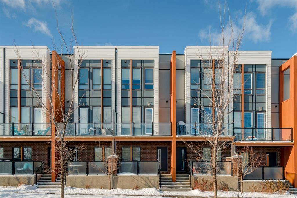 Situated in the vibrant and sought-after neighborhood of University District, this stunning three-story townhome has been meticulously maintained and seamlessly combines urban convenience and modern luxuries. With nearly 1,500 sq.ft of living space over three levels, 2 bedrooms, 2.5 bathrooms, a main floor office and a spacious open concept layout, this home is perfect for working professionals and investors alike. The lower level of the property has a covered patio which leads into the home’s foyer and versatile office space, perfect for remote work or as a quiet retreat for study. The open concept main level features 9-foot ceilings and beautiful hardwood flooring spanning the entire level. Large windows on either side of the home allows natural light to flow into the property all day long. The living, dining, and kitchen areas seamlessly connect, creating the ideal space for entertaining guests.The beautiful kitchen features timeless full height white cabinetry, quartz countertops, open shelving, ample storage space, a full pantry, and an oversized peninsula for added seating. High-end stainless-steel appliances including a gas range, chimney range hood and built-in microwave complete the kitchen. A discreetly located powder room and a private front balcony finishes this level. The upper level of the home is where you'll find two generously sized bedrooms. The bright primary suite offers dual walk-in closets with built-in organizers and 4-pc en suite featuring dual sinks and a tiled shower. The second bedroom has its own walk-in closet and access to a full 4 pc en suite bathroom. The upper level includes a laundry area providing added convenience for daily living. The oversized attached garage provides secure parking and the convenience of having your vehicle clean and warm year-round. The property comes fully move-in ready with central air conditioning (2023), central vacuum (2023) and custom window coverings throughout. With easy access to nearby amenities, including parks, shops, restaurants, and the University of Calgary campus, this townhouse epitomizes convenience and connectivity. Don't miss your chance to experience urban living at its finest in this immaculate townhouse in the heart of Calgary's University District. **Virtual Tour available upon request**