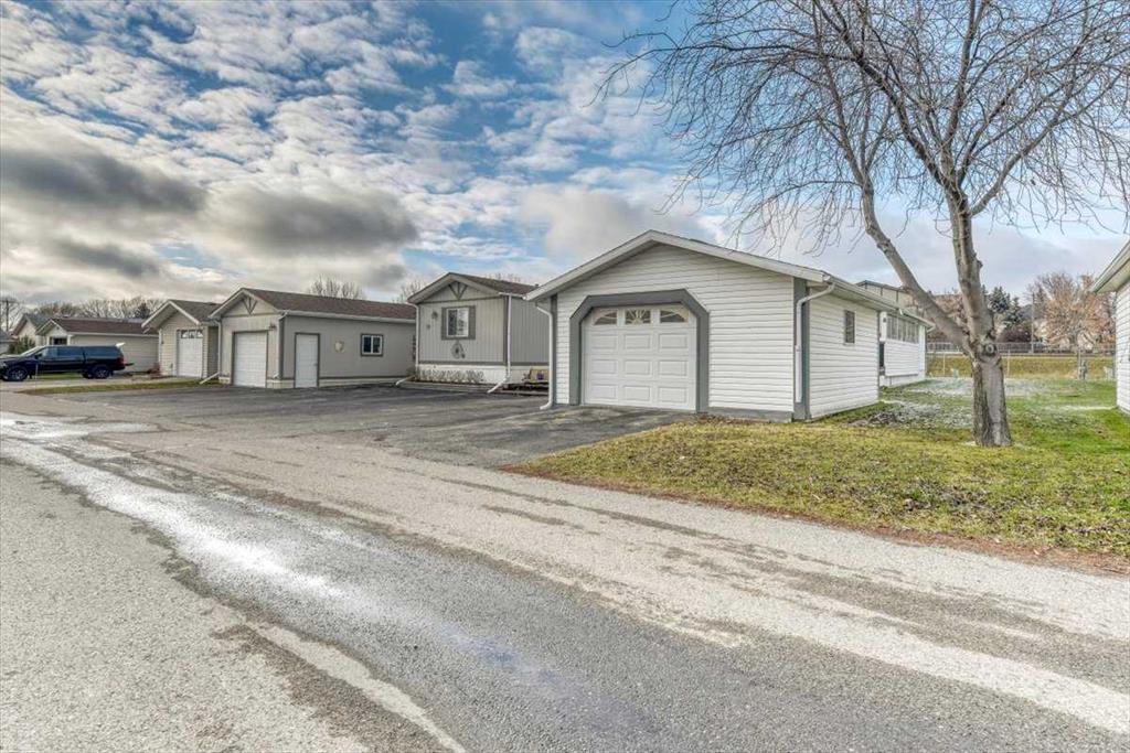 Welcome to the 55+ Gated community of Ranch Estates in Strathmore. This 2 bedroom home features a u shaped kitchen over looking the open living area. A large covered 3 season deck, with extra storage area and a Single GARAGE that are just some of the features of this home. Properties in this park with a garage are hard to come by. If you have been waiting to get into Ranch Estates this may be your opportunity. Ranch Estates is located close to shopping and banking. Strathmore has its own hospital, rec centre, swimming pool, and numerous amenities. The pad fee for this unit is $732.00 per month and includes grounds maintenance, snow removal, Garbage and WID watering for lawns and trees.