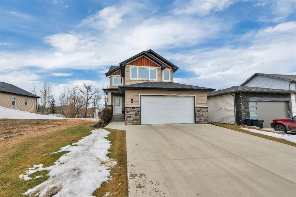 Prepare to be amazed by this stunning two-story home with a walkout basement situated in the highly sought-after Crestview neighborhood. The first thing you'll notice upon entering the spacious foyer is the polished grey tile flooring that runs throughout the halls. The modern grey laminate flooring in the living room, kitchen, and dining area adds to the contemporary design. The open-concept main floor provides ample space, with a comfortable living room featuring a cozy fireplace. The bright, airy kitchen boasts a sit-up island, quartz countertops, and plenty of ebony maple cabinetry – a chef's paradise! Step onto the north-facing deck from the dining area and enjoy the views of Sylvan Lake. The spacious upper level features a large family/bonus room with abundant light. There are 3 generous-sized bedrooms, one being the primary with a 5pc ensuite, while two of the three bedrooms offer views of the lake. A 4pc main bath completes this level. But wait, there's more! The walkout basement provides another large family/games room, a large bedroom, and another bathroom. Stay comfortable on hot days with central air and cozy in the winter with the in-floor heat. Take advantage of the large fenced backyard and oversized attached heated double garage. This home is a true gem with everything you need and more and is a pleasure to view. Conveniently located close to shopping, restaurants, and schools.