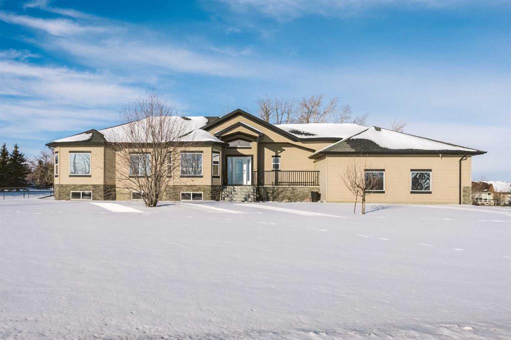 Welcome to your dream home! This stunning bungalow offers over 4300 square feet of luxurious living space, perfectly situated on .82 of an acre, providing you with ample space and privacy. As you approach, you'll immediately notice the massive driveway leading the oversize triple car garage, complete with in-floor heat and a convenient 4th garage utility door, offering plenty of room for all your vehicles and storage needs. Step inside and prepare to be amazed by the grand entrance flowing effortlessly into the open concept floor plan, flooded with natural light from the abundance of windows throughout. The spacious sunny nook is the perfect spot for enjoying your morning coffee, while the kitchen boasts tons of counter and cupboard space, high-end appliances including an induction stove, newer fridge and dishwasher, and a walk-through pantry leading to the mudroom and garage for easy access. Entertain guests effortlessly in the living room with its vaulted ceilings and centered two-sided fireplace, serving both the interior and the massive outdoor maintenance-free composite deck with a pergola, creating the ideal setting for outdoor gatherings and relaxation. Upstairs, discover four large bedrooms, each offering comfort and privacy. The spacious master suite features a huge walk-in closet, a luxurious five-piece en-suite, and French doors leading to the deck, allowing you to enjoy the serene surroundings at any time. The curved staircase leads you to the basement, where endless possibilities await. With a massive family room, there's ample space for a recreation room, fitness area, or games area, making it the perfect retreat for family and friends. Plus, with dual-zone in-floor heat, you'll stay cozy all year round. Outside, enjoy the beautifully landscaped grounds with an underground automated sprinkler system, stamped concrete bordering the home, and a ground level trampoline offering hours of fun in the sun. An enclosed gazebo provides another outdoor serene space for enjoying the tranquility of your surroundings. Indulge in your Artic Spa hot tub for year-round relaxation. With its impeccable design, high-end finishes, exceptional functionality, naturally light throughout and the incredible outdoor oasis, this one-of-a-kind family home truly offers the epitome of luxury living. Located on the very perimeter of Strathmore with a short commute to Calgary well worth the drive to be able to be fortunate enough to experience all the family benefits to small town living. Don't miss your chance to make it yours today!