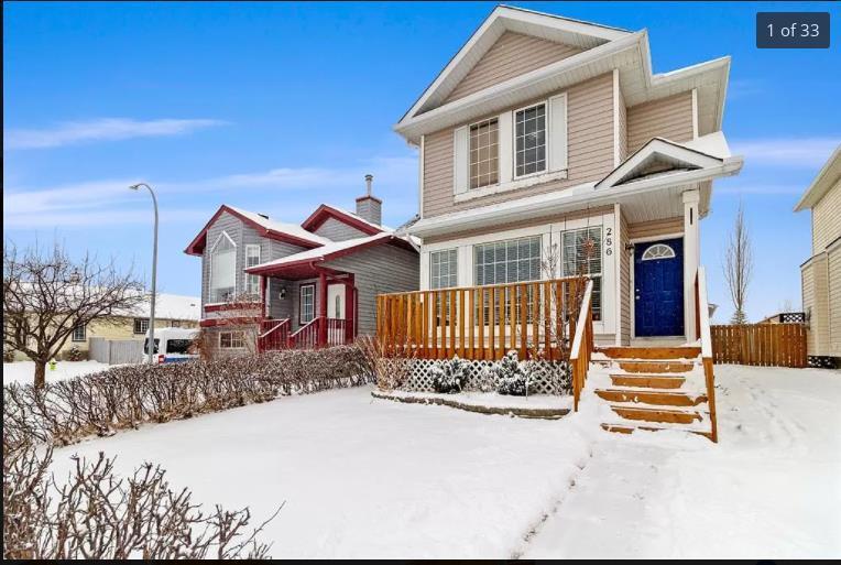 Welcome to this super bright 2 story home in the core of Coventry Hills. This home offers a MASSIVE detached DOUBLE garage (24X26), which is also HEATED, finished with drywall, and painted. Main floor offers plenty of natural light with large living room windows, laminate floors, modern color scheme and cozy stone-frame fireplace. The spacious, radiant kitchen with stainless steel appliances, light fixtures, and cabinets that extend to the ceiling, alongside a breakfast area ample enough for a large table. The second-floor hosts 3 bedrooms, including a generous master bedroom with a walk-in closet. The main bathroom upstairs offers a 4-piece bathroom with tile work, a vanity, and a glass-enclosed shower. The basement includes two extra rooms and a complete 3-piece bathroom. Glass sliding doors lead to the deck including gas line for BBQing in a fully fenced and landscaped backyard. This home also features a recently updated roof (2020) and a new front deck (2021). Walking distance to elementary schools, junior high and high schools. Various amenities such as recreation center VIVO, superstore and shopping mall are close to the house, this home is perfect for a growing family. Please note: the property has been painted all in white/beige colors after taking the initial photos.