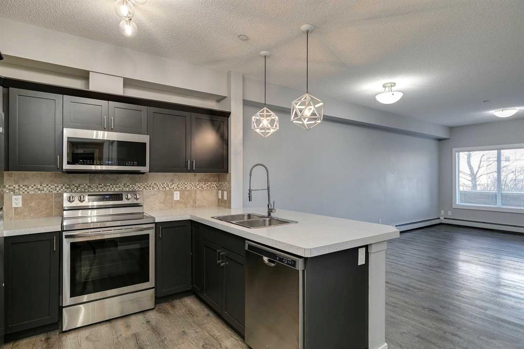 Nestled in the sought after community of King's Heights, this Stunning One Bedroom, One Bathroom ground level unit won't disappoint. Upon entering, you'll notice 9 ft Ceilings throughout, Luxury Vinyl Plank Flooring and an Inviting Open Floor plan that's made for entertaining. The Kitchen showcases Stainless Steel Appliances, Large Island and plenty of Cabinet Space. Relax in your spacious living room after a long day at work or enjoy an evening BBQ on your enclosed patio with gas line. Large Bedroom, a 4 Piece Bathroom and In-Suite laundry to complete this exceptional property. One assigned Parking Stall and Storage Unit is also included. Conveniently located, only minutes away from restaurants, shops, Parks and easy access to Highway 2. Come see it for yourself; all that's left is for you to move in!