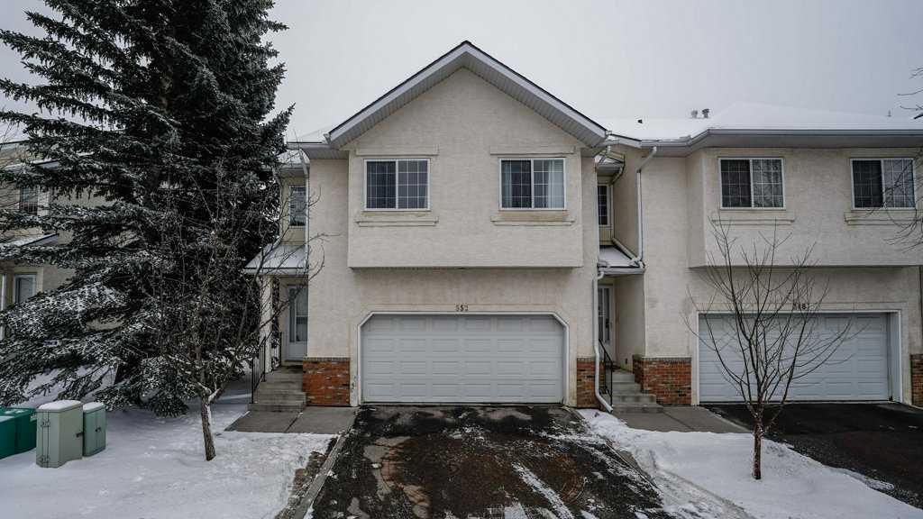 Spotless and move in ready best describes this End unit condominium. It offers a spacious main living area with kitchen granite counter tops, an adjoining dining area and spacious living room . The main area has hardwood flooring with a deck off the kitchen. The upper floor has a large master bedroom with a 5 piece en-suite, a second spacious bedroom with main bath and laundry room. The lower level has a walkout, large third bedroom or office area and a cozy family room with a fireplace. There is also a large storage area with a 4 piece bath. There is a large oversized double attached garage. NEWER APPLIANCES and PLUMBING IS CHANGED TO PEX. This is a quiet location, an end unit with downtown views. This condo community is surrounded by green spaces and includes a clubhouse with amenities. This is an great opportunity to live in WEST Calgary under $600K and owning a walk out property. THIS WON"T LAST!!!