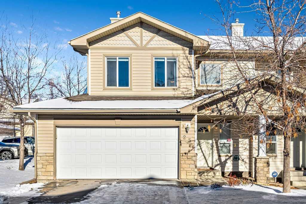 Step into this vibrant and contemporary 4-bedroom end-unit townhouse boasting a bright foyer with lofty ceilings, tiled flooring, and a burst of colour that adds a touch of flair. The main level showcases an open-concept layout, featuring a modern kitchen with plenty of counter space, a dining area, and a spacious family room adorned with elegant hardwood floors and a cozy corner gas fireplace. Upstairs, discover three generously sized bedrooms, including the primary suite with a walk-in closet and private en suite bathroom. The fully finished basement adds versatility with an additional large bedroom, full bath, and recreation room. Recently installed high-efficiency furnace and hot water tank (2024) ensure comfort and peace of mind. The double-attached garage, complete with a new door, workbench, and shelves, offers ample storage space. Enjoy the semi-private west backyard and the convenience of a nearby nature park with picturesque walking paths. Nestled in Citadel, this location is ideal for families, with playgrounds, parks, schools, and a community center just moments away. Don't let this incredible home slip away!