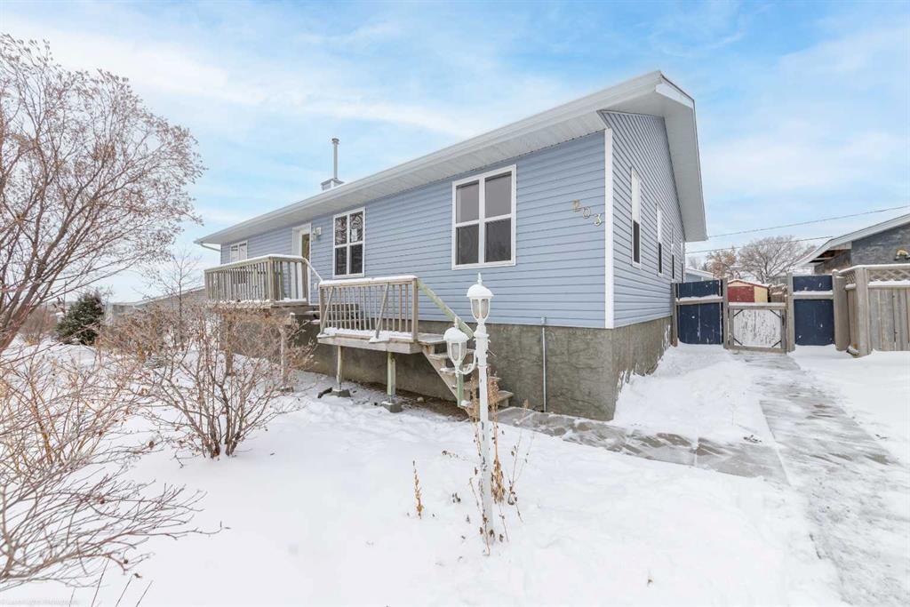 Enjoy over 1400 sq ft of main floor living space in this well-designed family bungalow. This home is situated in Marshall, Saskatchewan across the street from the Marshall school on an elevated lot with mature trees and shrubs. The home’s main floor features a kitchen with a large island, a separate dining room, adjacent living room, two spacious bedrooms, main floor laundry and a big main floor bathroom with a tub and separate shower. The partially finished basement has large windows and a well thought out floor plan which includes two more bedrooms, a family room, storage and a 2-piece bathroom. Some personal touches and finishing are required. Outside, in the south facing back yard, is a double detached heated garage with back-alley access. Note that Marshall is only 15 minutes from the City of Lloydminster on double lane highway. Come have a look at this attractive property! Property sold as is where is. No representation or warranties are made. Schedule A and Schedule B must accompany all offers. All offers must present a two business days irrevocable time period.