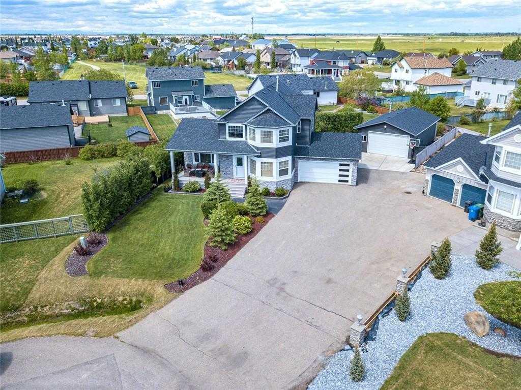 OPEN HOUSE FEB.10, 1-3pm. 1/4 ACRE LOT ON A QUIET CUL-DE-SAC | SECOND DETACHED GARAGE + SHOP 21x38ft | MASSIVE BACKYARD + RV PARKING | Welcome to 5 Henderson Bay, nestled in the charming town of Langdon, AB. Situated on a spacious 1/4 acre lot at the end of a quiet cul-de-sac, this property offers a serene setting just 25 minutes from Calgary. Upon entry, natural light flows throughout the home, illuminating the space with its large windows throughout (all triple pane above grade). The kitchen boasts modern appliances, including an induction range, complemented by quartz countertops and an elegant tile backsplash. The main level centers around a generous living area with a cozy gas fireplace, providing a perfect spot for family gatherings. Additionally, a separate office/den, sizable laundry/mudroom, 2pc powder room and a family dining area complete this level, with convenient access to the double attached garage. The upper level features a spacious primary bedroom with expansive bay windows offering views of the peaceful surroundings, a walk-in closet, and a luxurious ensuite. Two additional generously sized bedrooms cater to the needs of a larger family, plus an additional full bathroom. The fully developed basement offers versatility with a sizable fourth bedroom, full bathroom, a large family/living area ideal for entertainment, a home gym, and a dry bar. The property also includes a detached garage/shop equipped with 220V power, slab heating, and the option for a power lift. An attached double garage and a spacious driveway provide ample parking, including space for an RV/Boat. Outdoors, a new deck, in-ground sprinkler system, water feature, and hot tub create an inviting outdoor atmosphere. With all the space and amenities needed for a growing family, this home is conveniently located just 25 minutes from Calgary. Schedule your private showing today to experience the charm and comfort of 5 Henderson Bay.