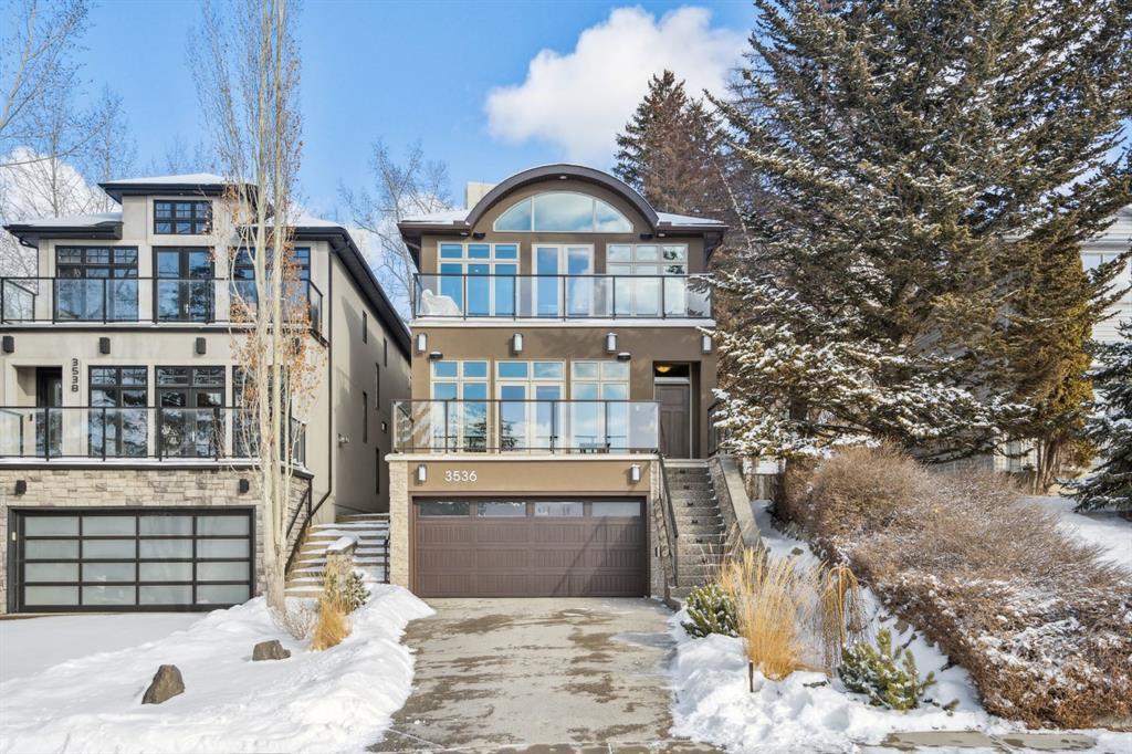 Inspired by the stunning river valley views this sophisticated & luxurious home features a front exterior graced by walls of glass. The sprawling interior space invites you into an open concept floor plan with gleaming hardwood flooring, high ceilings, audio/speakers throughout, custom built-ins & an abundance of natural light. The elegant living room with french doors to the front deck is a dramatic focal point to the main level, accompanied by an impressive gourmet kitchen that will meet all your needs with its granite counters, espresso cabinetry, professional grade appliances, and walk-in pantry. The oversized island and adjacent dining area create an ideal space for gatherings and open up to a large rear patio blurring the lines between indoor and outdoor entertaining. A divine primary retreat presents vaulted ceilings with massive arched windows and an opulent ensuite bath with jetted tub, dual vanities, steam shower & heated floors. Two generous size bedrooms and a convenient laundry room complete the upstairs. The lower level houses a large rec/media room with wet bar and can easily accommodate a 4th bedroom if desired. It also features a unique triple car garage with a glass enclosure ideal for that car or gym enthusiast & comes with a heated epoxy concrete floor. This one of a kind home highlighted by its many upgrades which include efficient triple pane windows, double pane doors, remote blinds, upgraded bathrooms on the main and lower, new HWT, and extensive upgrades to the rear landscape for a true backyard oasis. A truly unparalleled location, this home is situated on a quiet tree lined street in Parkdale only minutes to the Bow River pathways, Hospitals, schools, shopping, restaurants, and to downtown.
