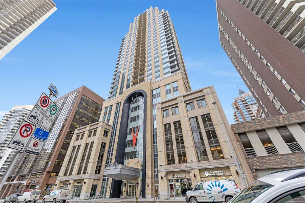 Excellent location for this 2 bedroom, 2 full bath, SW facing condo conveniently located in downtown Calgary! The building is walking distance to the C-train station, the Bow River pathways, green space, parks and a ton of amazing restaurants. This unit features high-end finishes throughout including contemporary cabinets, quartz counters, stainless steel appliances. Open concept floor plan with engineered hardwood floors, floor-to -ceiling windows & spacious balcony. The primary bedroom includes windows on 2 sides and 4 pc ensuite, the 2nd bedroom has easy access to the main bath with oversized glass shower. Additional features include insuite laundry room, titled indoor parking & extra storage and central A/C. Condo fee includes heat, water, sewer, professional management.