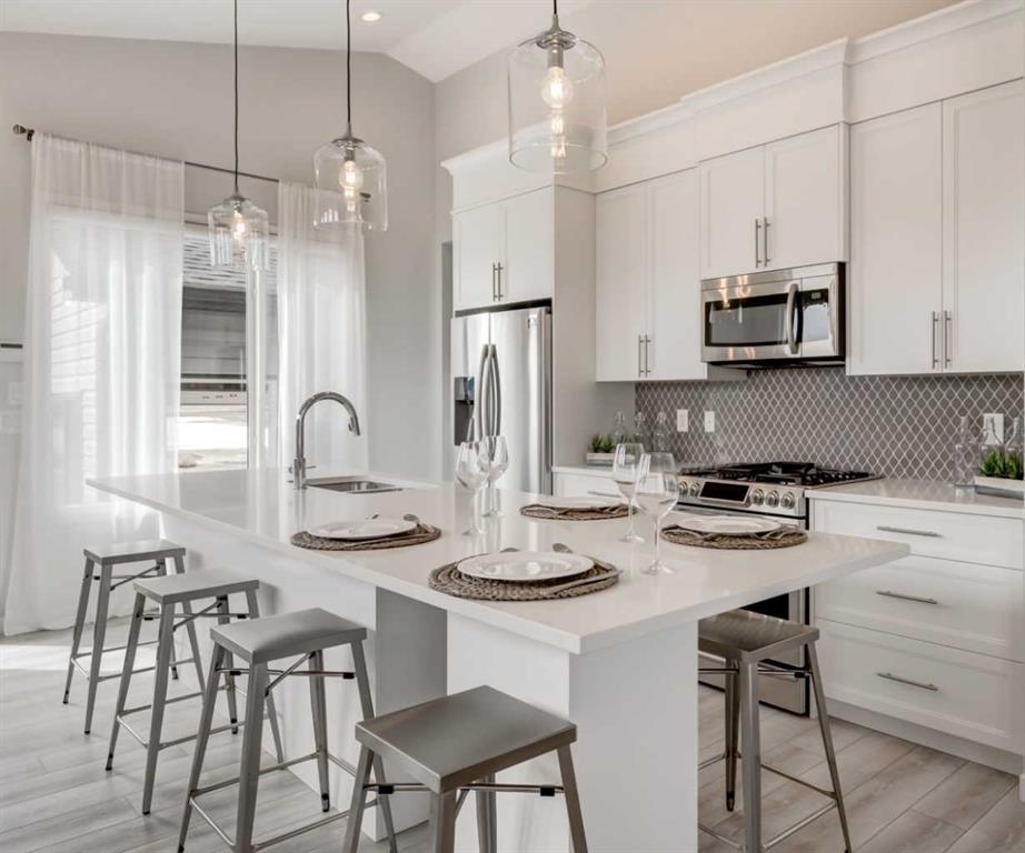 Experience comfort and convenience in this charming 3-bed, 2.5-bath home spanning 1,560 sq ft. Located in the bustling new community of Seton, this quick possession home is ideally situated just steps from a future green space and wet pond. This endearing home includes a front-facing great room that is perfect for entertaining, while the island with an extended eating ledge adds functionality to the kitchen. A rear mudroom provides easy access to the backyard, where you will find rear lane access and a parking pad with room for two cars. A primary bedroom can be found on the upper floor with a 4-piece ensuite and walk-in closet, as well as two additional bedrooms, a full bathroom and a full-size laundry room. This home is ideal for anyone looking to add an additional space down the line, as there is a separate entrance to the basement just off the main porch. While the basement is currently undeveloped, there are rough-ins for a future bathroom. Photos are representative.