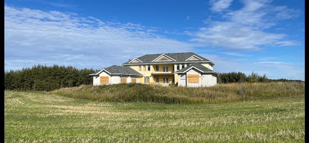Great opportunity to own your very own piece of paradise in the County of Camrose. This beautiful 10.23 acre parcel is situated in the rolling hills near the Miquelon Lake Provincial Park entrance. Just minutes from Camrose and a short 35 minute drive to Edmonton would be ideal for anyone wishing to commute and be able to enjoy serene country living. This beautifully treed, pasture land with ponds and rolling hills is right off the highway and is convenient for the professional person, small business entrepreneur or hobby farm enthusiast. This fully serviced parcel of land contains a partly built 5566 square foot, above grade, two storey home with walkout. The interior is framed but unfinished. The home consist of a 6 car garage, beautiful views facing north and south and is framed for an elevator and plumbing for in-floor heating on the lower floor. This unfinished home is waiting for your finishing touches to customize it to your liking. With this large sized acreage and majestic home, the possibilities are endless.
