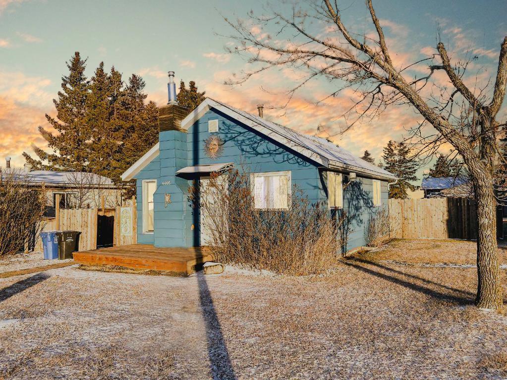 INVESTMENT PROPERTY or FIRST-TIME HOME BUYER? Fully furnished home; move-in ready! Everything you need! This home has a newer deck (2023) at the front and a covered back patio at the back, for privacy and shade. Shingles and insulation are 5 years old. Windows are 2018. The yard is fully fenced! The back yard has lots of room for storage and RV parking off of the back lane. Inside, a large boot room that doubles as a pantry (but would make a great office too), a laundry room, kitchen with lots of cupboards and dining area. The living room is spacious and has a gas fireplace to keep things cozy. Two bedrooms and a main 4pc washroom. Laminate and linoleum flooring throughout! Outside, producing raspberries and lots of room for a fire pit! As an investment, this property can be purchased with MLS A2106791 next door, for $250,000 (for both properties).