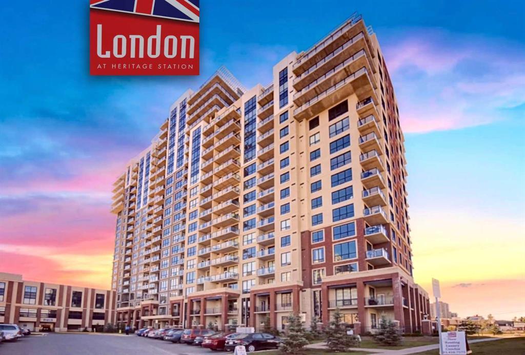Nestled in the iconic London at Heritage Station highrise, Unit 808 presents a dazzling fusion of comfort, convenience, and panoramic sun-filled views to the south.. This 2-bedroom, 2-bathroom Dover unit is your gateway to urban sophistication with quick connectivity to downtown via the adjacent pedestrian bridge to the Heritage LRT – making city commuting a breeze. With an expansive 975+ sq.ft. of airy living space, delight in the unobstructed mountain views offered from your private balcony. Bask in sun-drenched days thanks to the southern exposure, amplifying the property's charm (and lowering your heating bill too!). Adorned with exquisite granite counters, rich dark maple cabinetry, and a full-height tile backsplash, the open-concept kitchen is both functional and inviting. The breakfast nook, perfect for your morning brew, seamlessly transitions to the spacious dining & living area. Large energy-efficient windows bathe every room in natural light, setting the tone for cozy evenings gazing at the stars and vibrant social gatherings. For your convenience, in-suite laundry features a stacked washer/dryer combo. The Primary bedroom also comes with a full 4 pc ensuite to soak in after a long day at work. Enjoy your condo living lifestyle where you can appreciate the secure underground parking, 24/7 concierge services, a serene rooftop sunroom and outdoor garden/patio on the 17th floor. But that's not all! Only a few steps away, a world of amenities awaits: Whether it's grocery shopping at Save On Foods in your PJ’s from the heated parkade access, grabbing your favorite brew at Tim Hortons, or exploring boutique shoppes and services on site – all are effortlessly accessible onsite just minutes from your front door. Elevate your lifestyle at 808 8880 Horton Rd SW. (That’s a lot of 8’s and if that’s not lucky I’m not sure what is!) With new luxury vinyl planks and fresh pain… this one is move-in ready. Dive into urban luxury, superb connectivity, and an unbeatable neighborhood ambiance. Call to schedule your exclusive tour today!