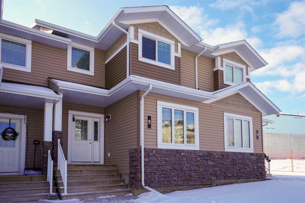 No condo fees & immediate possession! This 2 storey townhouse has a great layout with lots to offer. There is a bright office/den located off the front entryway & a good sized living room with open concept to kitchen & dining area. Dark counter tops contrast nicely with white kitchen cabinets with soft close drawers, crown mouldings & a separate pantry. The window over the sink allows for additional natural light & a great view to the backyard with no neighbours behind! Upstairs there are 3 bedrooms, with a spacious primary complete with ensuite & walk in closet. The basement has great potential for future development if desired. The backyard is fully fenced & landscaped & offers a great space for kids, pets or garden area! Super location in Sylvan Lake with quick highway access, minutes to downtown & of course the beautiful beach!