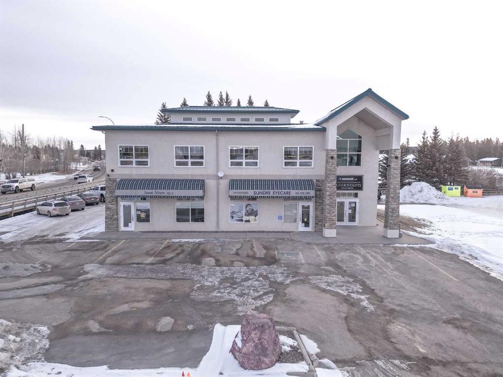 Prime Office Space in Sundre, Alberta - Investment Opportunity! Situated on corner of Hwy 27 and 6th street, this 2 story office building features 5,825 sq.ft. of space and presents an excellent investment opportunity for a business looking to own their own space or investors looking to strengthen their commercial real estate portfolio. The layout includes two 1100+ sq.ft. units on the main level, a spacious 2522 sq.ft. unit on the second level, and a 988 sq.ft. common lobby with washroom and a two-person lift. The current tenants, comprising stable and reliable professional service businesses, have escalating leases in place, contributing to a positive financial outlook. The property's strategic location on Hwy 27 ensures maximum visibility, with an average annual daytime traffic count of approximately 18,000 per day. Additionally, its proximity to the downtown core and residential housing makes it highly accessible and appealing to both commercial and local community needs. The paved parking lot, featuring 24 parking spots on three sides of the building, offers convenient access for clients and employees. Positive financials and detailed maintenance records underscore the property's stability and commitment to upkeep. Seize the chance to own a piece of Sundre's growing business landscape.