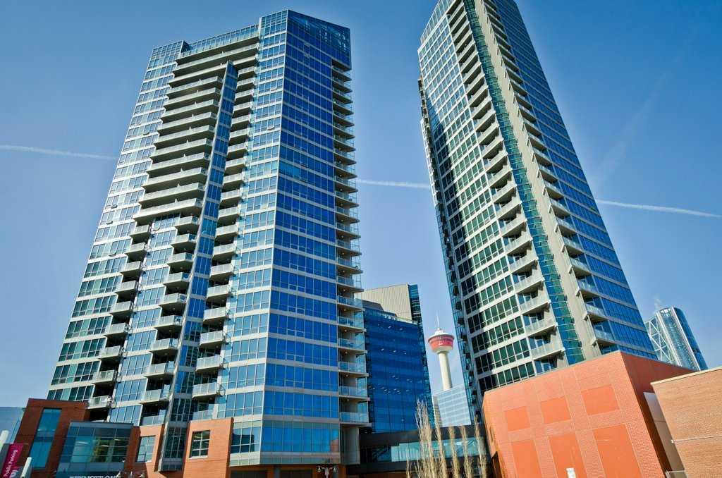 **Luxurious Downtown Living with Spectacular Views** Welcome to this stunning one-bedroom condo located on the 5th floor of the Keynote Urban Village, offering a luxurious urban lifestyle in the heart of downtown. This 580 square foot unit boasts a dark, rich color scheme, reminiscent of the show suite, with a northeast corner location providing fantastic downtown views and unparalleled privacy. Step inside to discover a space designed with the latest trends in home decor. The open floor plan features granite countertops, hardwood floors, and Samsung stainless steel appliances, perfect for both cooking and entertaining. Floor-to-ceiling windows bathe the living area in natural light, highlighting the nine-foot ceilings and creating an open, airy atmosphere. The master bedroom is a peaceful retreat, complete with a walk-through closet and an en-suite bathroom. Enjoy the convenience of a heated underground parking stall on P4 level (unit 423) and storage (unit 717). KeyNote 2 Urban Village offers residents easy access to downtown amenities. Just a block away from the +15 and two blocks from the C-Train station, commuting is a breeze. Start your mornings right with breakfast at Sunterra Market, open from 6:30 am or grab your favorite latte from Starbucks before heading out. Don't miss this opportunity to live the dream lifestyle in one of Calgary's most sought-after urban communities. Schedule your showing today!