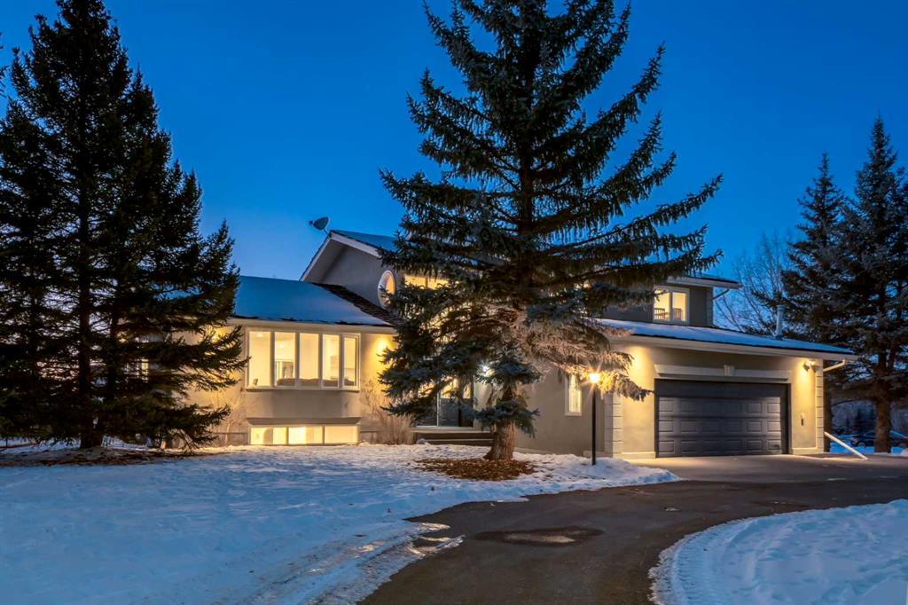 EXCEPTIONAL VIEWS from this large renovated family home in the private and desirable area of Springbank Heights. Welcoming you as you approach is a large circular driveway with large mature trees. This 6 bedroom 4 bath split level home has had several recent updates including new kitchen, bathrooms, flooring, paint, led lighting, baseboards, casings, interior doors, newer windows, patio doors, new deck, window coverings and custom California Closets to name a few. The bright large front foyer welcomes your guests to an inviting main floor living room with a wood burning fireplace, a family room and spacious kitchen and dining room. Down the hall you will find the main 3pc bath, 5th bedroom or possible main floor office, and laundry / mudroom. The west facing all season room is a peaceful space to have coffee or use as a workout room, and offers access to the west facing deck, and the hot tub and BBQ area. Head upstairs to 4 large bedrooms including the master – all with custom California closets. Downstairs in the walkout basement is a large and bright recreation room with wet bar, and further down you will find a private tv or video game room, as well as an additional large bedroom and full bath. The west facing backyard overlooks your mature landscaping and large trees with views of the mountains and of the the Bow River Valley. Looking east your views are of downtown Calgary and stunning sunrises out your front windows. There is so much storage in this large family home, a massive oversized double heated garage with lots of shelving and in the rear of the home you will also find another outdoor storage garage under the home perfect for quads, lawn equipment, bikes, sports equipment etc. There is also plenty of room in the front of the property to build a shop or second garage if you so desire, or chose to use this fenced space for your dogs to run, or perhaps a sports court or rink is in your future? There are lots of options here for you to explore. This location is unbelievably private and quiet and is surrounded by amazing neighbours. Close to awesome schools, a quick drive to anywhere in west Calgary, (just under 12 minutes to the new ring road) but just far enough that you will enjoy peace and quiet - you’ll love living here. Welcome home!