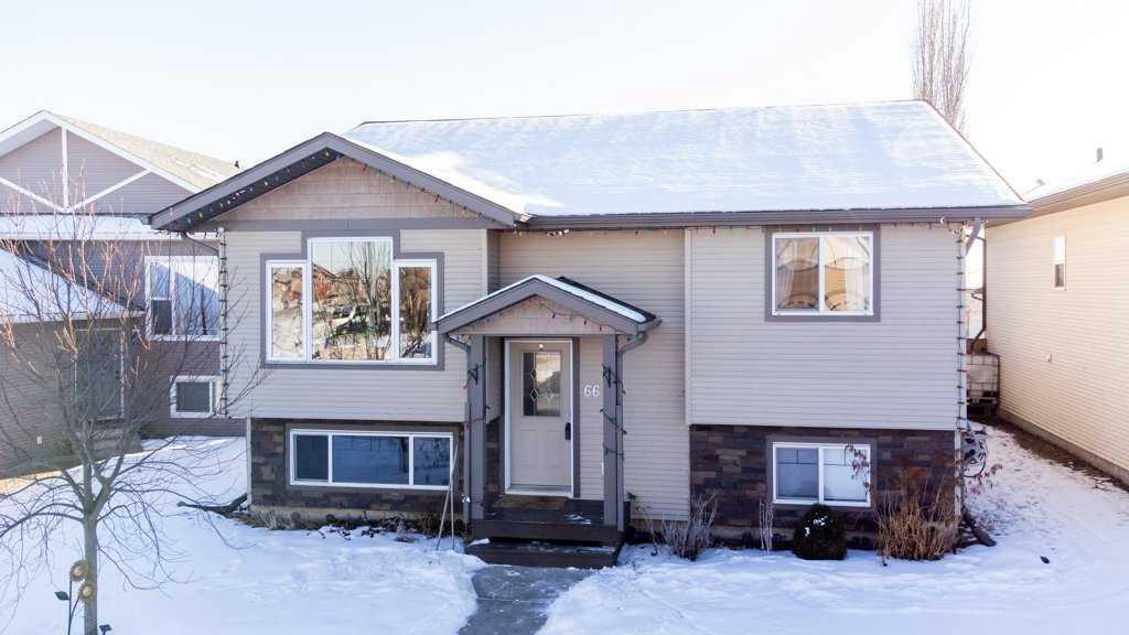 The perfect family home DOES exist! Welcome to 66 Iron Wolf Blvd! This pretty home features a pleasing, functional layout with 5 bedrooms AND 3 full bathrooms. Curb appeal starts here! The entrance features a nice sized landing WITH a handy coat closet. The living room is calm and inviting with light neutral flooring, fresh paint and bright white baseboards and trim. The spacious kitchen offers ample cupboard space, tile backsplash, stainless steel appliances, ample storage space and a roomy dining area with a big south facing window! From the main living area, the hallway flows to two good sized bedrooms and a full 4 piece bath. The master suite at the back of the home features a bedroom with a FULL 4 piece bath and a walk in closet. Heading into the lower level, there are TWO more LARGE bedrooms and another FULL BATHROOM. The large family room is still warm and bright with big south facing windows.Movie AND Game night is possible here! There is also a large storage room, and a mechanical/ Laundry room. The back yard is GLORIOUS. Fully landscaped with custom walkways, plants & perennials. There is a TIERED deck complete with GAZEBO for entertaining. Backing onto research land, this SOUTH FACING home feels like country in the city. This lot also features off street/ RV parking. This home has been well maintained and updated with fresh paint & trim, laminate flooring, new shingles to name a few and a WONDERFUL location. On a family friendly street, 66 Iron Wolf Blvd. is a GREAT place to call home!