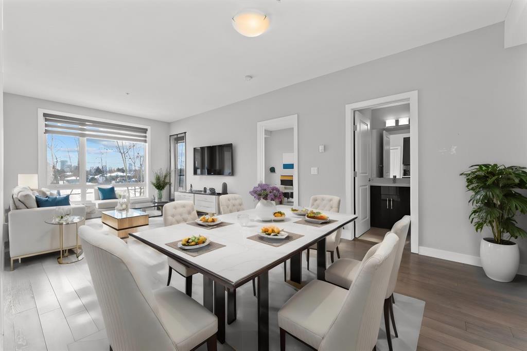 BACK ON MARKET!! LOCATION!LOCATION!LOCATION! Awesome 2bdrm, 2 bath condo in Mount Pleasant NW! Close proximity to many restaurants, shopping, groceries, parks, school, downtown, SAIT, U of C, Foothills Hospital and much more! Easy access to 16th, crow child, shaganappi, etc. This spacious end unit with south facing windows has lots of natural light and great views of downtown! The unit is open and spacious with 9' ceilings!Comes with 1 titled heated underground parking which has visitor parking and a heated ramp! Kitchen has a large pantry and is tucked away giving you an even more open living space. Stainless steel kitchen appliances and quartz counter tops throughout. Stacked washer/dryer are less than a year old. All windows have zebra blinds to control light coming in. Pet friendly! Don't miss the out on this great condo in a vibrant community!