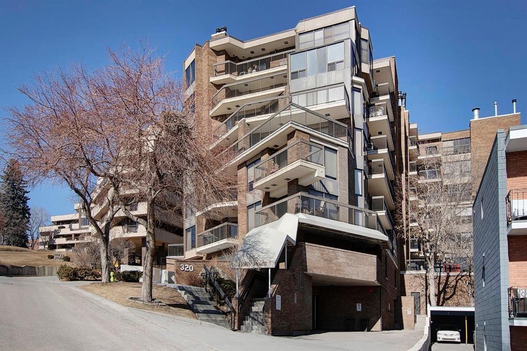 RARE OPPORTUNITY to own in the much sought after Holly Park! This incredible remodelled unit with just over 2100sqft of total space is waiting for a new owner. Crescent Heights is one of the most vibrant communities that surrounds the downtown core. As you enter into the suite you will immediately notice the updates throughout. Incredible natural light from the south facing 630 sqft balcony bounces off the newly updated luxury vinyl plank floors. Surrounded by mature trees you are forced to relax and take a deep breath as the sun sets on the city skyline. The kitchen features a breakfast bar, updated cabinetry and Fisher Paykel appliances to channel your inner chef. Two massive bedrooms await with the Primary featuring updated bathroom and East facing morning sun! Step outside to the one of a kind 630 sqft of outdoor space which soaks in the southern sun. The city and river views are something that will capture the attention of any and all! We promise this condo unit will make your jaw drop with professional design and decor as you walk through all 1488 sqft of living space. Imagine warming up to the nostalgic wood burning fireplace while watching the city lights below. Last, but not least is the new and improved Gym just down the hall. Perhaps you prefer poker, or pool with the private Lounge which is on the same floorl too! Come find out why Crescent Heights and Bridgeland is such a desirable place to live. Full supermarket is just down the street, so many restaurants to choose from and river walks at your doorstep. Don't miss out - Call to view today!