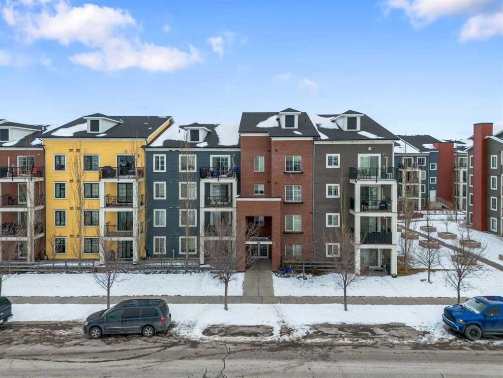 The unique plan offering Corner unit with 2 bedrooms and 2 bathrooms with 2 titled Parking. Located in a quiet community, this Over 900 sq ft of beautiful living space offers 2 GREAT-sized bedrooms, 2 luxurious full bathrooms, and an open concept Kitchen with island, Dining & Living floorplan that is suitable for those who are now looking to purchase their first home, investment property, or for anyone looking to downsize. What's more, this unit is facing park right from the comfort of your own home! Value added upgrades to note while you tour: Hardwood flooring, A/C in living room, Upgraded shower in ensuite, MDF Shelving organizers in both bedrooms closet, Ceiling Fans in bedrooms, full size in suite laundry, large windows, 1 Titled underground parking with storage and 1 surface title parking. Let's start the tour! Entering this fine condo unit, owners will be amazed by the openness, bright and airy space coupled with designer modern features including luxurious Engineered hardwood flooring, sleek & well-kept kitchen cabinetries complete with premium Granite countertops, and a center kitchen island with breakfast bar - great for a quick meal or entertaining! The large open space also features a WALK-OUT with sliding glass doors to your own PATIO & BBQ space and the side view of amazing Park allowing you to open up your living space to more social gatherings with family and friends in the coming SPRING and SUMMER seasons - what more could you ask for in an apartment unit?! Moving along this fine home is a shared upgraded 4-piece main bathroom and a great-sized 2nd bedroom or potential for a WORK-FROM-HOME office, home gym area, or hobby room. Other Side of living room is the master bedroom that features a walk in closet, a luxurious upgraded 3-piece ensuite, and large window in the room. Lastly, this unit also features your very own washer and dryer that is located in the unit for your convenience. The community of Copperfield in SE Calgary is located close to Stoney Trail & Deerfoot Trail and has a variety of Parks, lots of walking paths, shops, restaurants, groceries, and amenities within its community plus the South Trail Crossing shopping mall is just a short drive away on 130 Avenue SE. Don't miss out on this great opportunity - just in time with low condo fees!