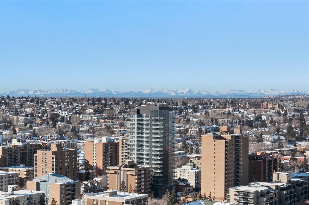 Welcome to this stunning 24th floor apartment in the amazing LUNA building with breathtaking sunny, SW panoramic views of the Rocky Mountains. This lovely 2 bedroom, 2 bath home in the highly desired, buzzing and vibrant Beltline neighborhood has everything you need with a range of convenient amenities such as concierge, fitness centre, yoga studio, party room with a pool table, guest suites, a courtyard with green space and visitor parking. After a long, hard day, come home to your air conditioned, peaceful corner unit and sit out on the SW balcony to enjoy the setting sun over the Rockies. Your new home has laminate and tile flooring throughout and the 9-foot floor to ceiling windows with an abundance of natural light provide a beautiful and bright living space for your enjoyment. The contemporary kitchen is a chef’s dream with quartz countertops, stainless steel appliances, modern cabinetry, glass backsplash and a gas range. The sizeable island also provides ample space for entertaining your guests. The master bedroom has its own walk-through closet and a beautiful, modern and elegant 4-piece ensuite. There is a bright second bedroom with large south-facing windows, a second 3-piece bath and a laundry room with newer stacked washer/dryer and additional storage space. You can also park your vehicle in your titled, secure underground parking spot on P1. This home is the complete package of convenient and modern inner city living in a breathtaking setting and excellent location. Units like this one on the upper floors of this great building rarely become available so do not hesitate and call your favourite realtor to arrange a showing!
