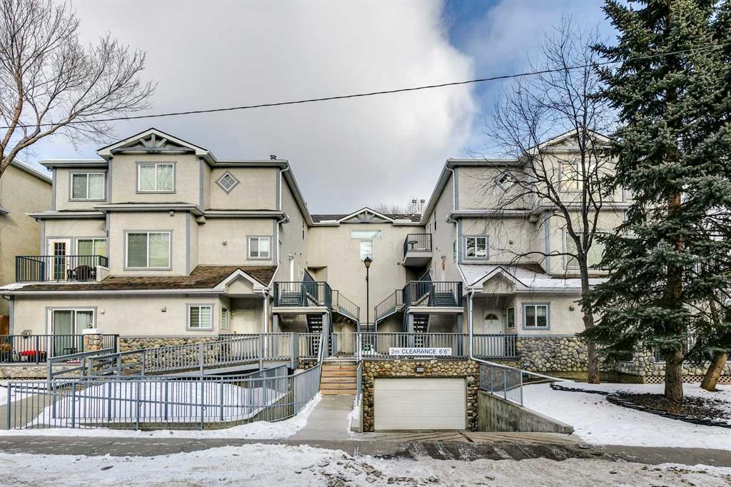 Fantastic Two Story Townhome in excellent inner core location + in quiet complex. Renovated + with an excellent layout with lots of light, 9 foot ceilings + open concept design. Kitchen has stainless steel appliances, informal dining room + spacious family room with corner fireplace . There is a large main floor bedroom + 4 piece bath . Large deck which overlooks a pretty courtyard. Upstairs is dedicated to the primary bedroom with vaulted ceilings , ensuite bathroom + private balcony. Laundry is located on this level as well. Two tandem titled parking stalls. Convenient location close to Chinook Center, Britannia shops, + downtown.