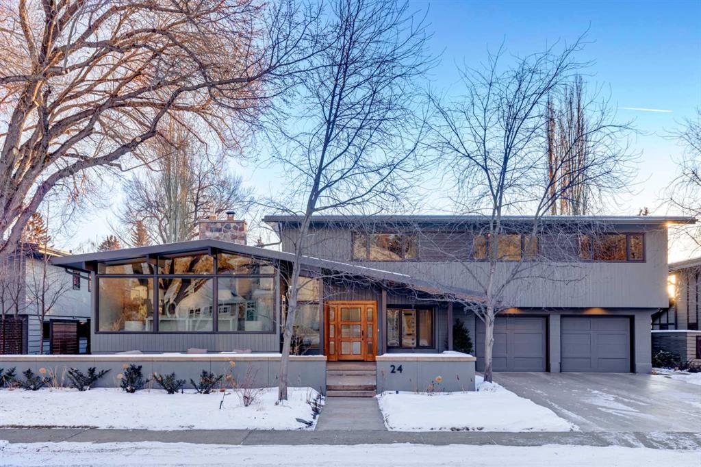 Rarely does a property with this style, location, and size come for sale in the inner city. Upon arrival you will notice the inviting west facing patio, solid wood front door, and formal entry. This stunningly renovated Mid Century Modern home provides 3,562 square feet above grade on an exceptionally private, treed, irrigated and landscaped 10,187 square foot lot (85 X 120 feet). The kitchen was thoughtfully designed for an owner who loves to cook and entertain family + friends. Renovations include 2 Miele dishwashers, Miele built-in all fridge, Monogram gas cook-top + warming drawer, double Miele wall ovens, 2 wine/beverage fridges, Scotsman ice maker, custom cherry-wood cabinets, an oversized island, honed slate counters, and walk-in pantry w/ stand-up freezer. Off the kitchen, watch the sunrise on your tiered composite deck and walk down to the 3-season Pergola w/2 heaters, a fireplace, and retractable canopy cover. Come summer, enjoy the raised vegetable gardens, perennials & green space. Head back inside on the entry level to discover attributes that will simplify an owner’s life; laundry room with dog shower; home office w/ built-in multi-tasking desks + shelves (office area floors are heated); mudroom w/ endless storage; direct access into the double attached garage w/ epoxy flooring, and the ultimate gear room with wall panel storage & Hayley cabinetry. The upper floor is air conditioned and has the hard to find 4-bedroom layout w/ a 5-piece kid’s bath & luxurious primary retreat w/ walk-in closet & 4-piece ensuite (both bathroom floors heated). All the bedrooms have well designed closet organizers & custom window coverings. The lower level features a workout room, guest room w/ gas fireplace, 3-piece bath, theater room w/wet bar + beverage fridge, naturally cooled wine cellar, & 500 sq. ft. of half-height storage. Don’t miss what else is included with the sale: 5 TVs, theatre room speakers, safe, reverse osmosis filter, water softener, Cat-5 wiring, Vacuum System + attachments, 2 humidifiers, 2 UV light filters, and alarm system. Both furnaces were replaced in 2023 and the roof was done in 2009. Located in the family-friendly neighbourhood of Mayfair, Lower Massey Place offers a tight-knit community feel and great neighbours. This home is steps from the Elbow River pathway system, community park/ice rink, Glenmore reservoir, and a short walk to the shops/restaurants of Britannia.