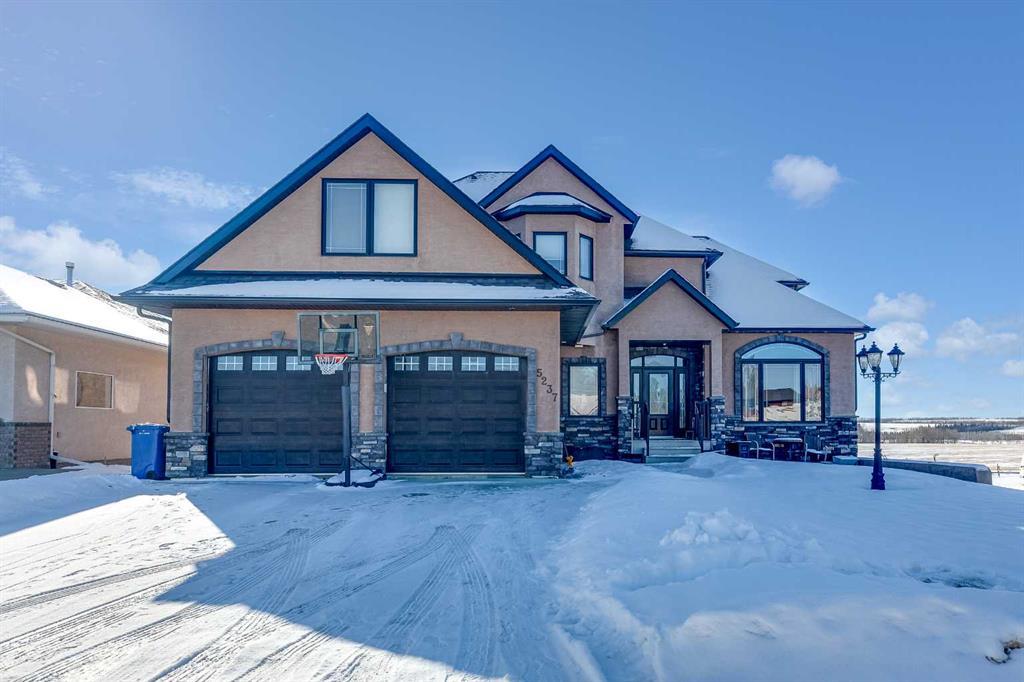 STUNNING executive home situated on a large corner lot, in the desirable South side of Rimbey! This one of a kind, custom built home, offers breathtaking, expansive views to the South, off a massive custom deck with tons of room for gathering off of the main level kitchen. Featuring over 4900 sq ft of living space, with 6 bedrooms and 3 and a half baths, this home truly is a must see for larger families with plenty of room for extended family. There is a gorgeous, open kitchen, with large island and upgraded appliances, built in wall oven and microwave, beautiful quartz countertops which you will find throughout home, cozy sitting area off of kitchen with gas fireplace and a bonus room which leads to main level deck. Also on the main level, upon front entry, an impressive spiral staircase to upper level with yet another cozy sitting room to your right with an additional gas fireplace. Laundry is conveniently located on main level upon entering from your double attached garage with in floor heating. The top floor boasts a huge primary bedroom with large ensuite, featuring heated floors, double vanities, jetted soaking tub and a large jetted shower, as well as a large walk in closet. Three more bedrooms upstairs along with a bonus room above garage for a home gym accompany the primary bedroom. Downstairs you will find a massive recreation room with a full wet bar, that includes a refrigerator and dishwasher, two more bedrooms and access to your backyard with a beautiful, bright walk out basement. A covered patio and hot tub provide an area to sit and relax and enjoy the gorgeous views to the South of your home. In floor heat in the basement for cold winters and central air for hot summer days also compliment the amenities. This home truly has so much to offer and the exceptional craftsmanship, time and detail of quality of work, show upon entry. This truly is a gorgeous home, in the perfect location and well worth the view!