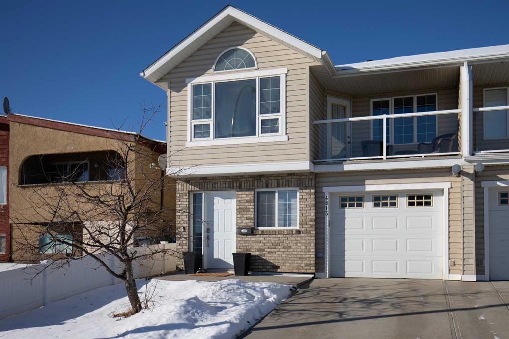 Well maintained half duplex conveniently located in downtown Innisfail. Walk in on the lower level that hosts the bright laundry room with sink, down the hall is the large family room with gas fireplace, ample space for versatile furniture arrangements, including a cozy sectional or entertainment center. Access off of your family room to the patio and backyard. Good sized bedroom and 4 pc bath, storage room, under stair storage along with access to your garage finish off the lower level. Up the stairs to the bright and open-concept living spaces, seamlessly blending the kitchen, living, and dining area together, great for entertaining . Second gas fireplace is located in the inviting living area. Good sized primary bedroom with access to your own deck to sit and enjoy those summer afternoons. Two more bedrooms and a 4 pc bath finish off the upstairs. Private deck area off the dining area. Vinyl fenced yard with garden boxes and storage shed. New washer and dryer in the last 2 years as well as new hot water tank, fan on furnace and new flooring in the lower level family room. Beautifully updated home with pride of ownership.