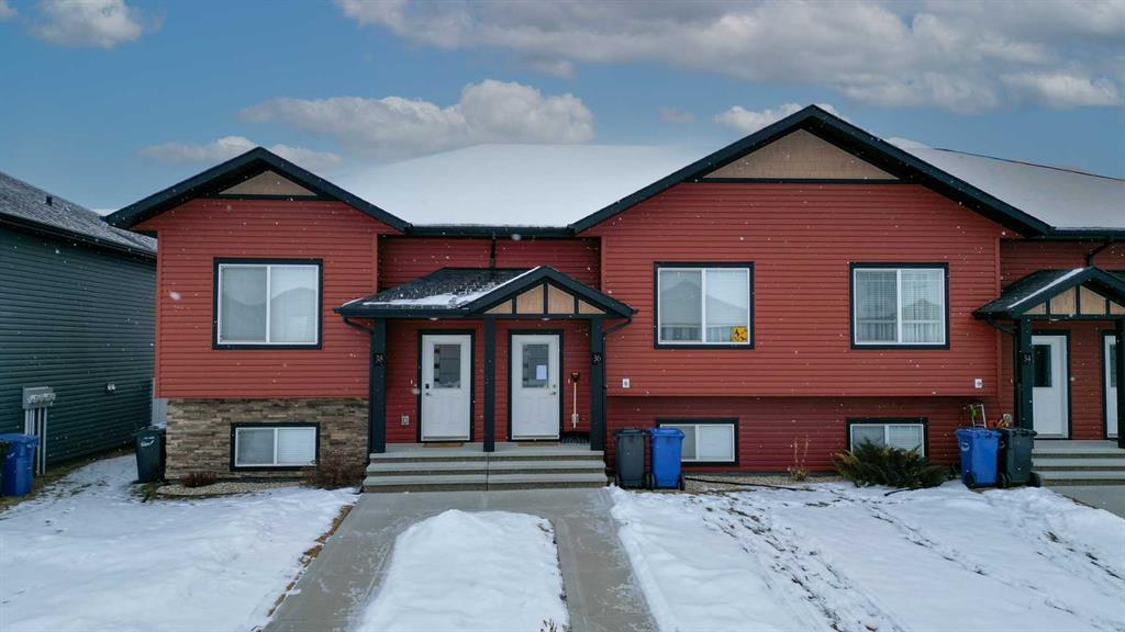 Great revenue property! PROPERTY RENTS FOR $2195 PER MONTH INCLUDING UTILITIES (WHICH AVERAGE APPROX. $300 PER MONTH). This 3 bedroom 2 4 piece bathroom townhome is situated on a quiet close with no neighbors behind. It's just steps away from the Penhold Multi-plex and high school, and only a couple blocks to all amenities including a grocery store, pharmacy, liquor store, post office doctors office, Tim Hortons, Beauty salons and more! The upper floor has an open kitchen/living room/dining room concept, a 4 piece bathroom and a bedroom/office. The lower floor has an additional two bedrooms, a 4 piece bathroom and a family room. The rear yard has a good size deck, a vinyl fenced yard and a gravel parking pad. A great property that's very affordable. Comes complete with 6 appliances. Only a 7 minute drive to Red Deer!