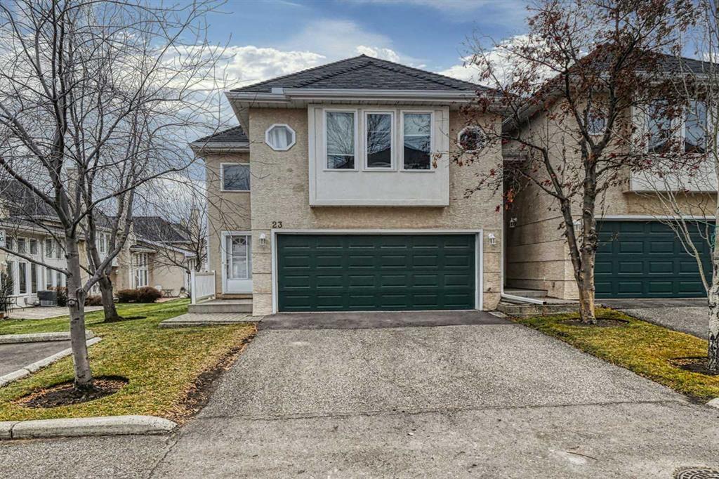 Nestled in mature landscape, with nature out your door a mere steps from the spectacular Fish Creek Park. Offering 2,481 SF of living space, this END UNIT Villa captures sunny Southern exposure and unobstructed greenspace views from the floor to ceiling 2 storey height windows. Soaring vaulted ceilings and an open concept design, the main level is flooded with natural sunlight. Rich hardwood flooring flows throughout the open living and dining space, anchored by the corner gas fireplace. The kitchen and breakfast nook feature timeless white cabinetry, subway inspired' tile backsplash, granite counters, stainless steel appliances and gives access to the large deck. A powder room completes this level. Upstairs you will find, thru French doors, an open to below loft/family room. The spacious design easily accommodates a 'King' in the Master's Quarters with a walk-in closet and 4 piece ensuite. A second guest room and 3 piece bathroom complete this space. The basement is finished with a recreation room, laundry room and 2 piece bathroom. Don't overlook the new tile flooring in the kitchen and carpet on the stairs, upper level and basement making this home move in ready!