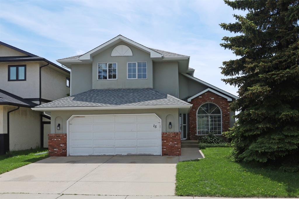 Steps to a playground & bus stops, & only minutes to neighbourhood schools is this 3 bedroom two storey in the popular family community of Hawkwood. Excellent bones in this bright & spacious home, which enjoys vaulted ceilings & sunny eat-in kitchen, 2.5 bathrooms & fenced Southwest-facing backyard. Perfect for family living or entertaining are the open concept living & dining rooms, which leads into the great-sized kitchen with loads of cabinet space & dining nook with bay window & access to the backyard deck. Family room has parquet floors, wet bar & wood-burning fireplace. Total of 3 bedrooms up including the oversized master with big walk-in closet & ensuite with jetted tub, separate shower & double vanities. Lower level is partially finished with a huge rec room. Additional features: main floor laundry room with built-in cabinets & sink, roughed-in plumbing in the lower level for another bathroom, 2 furnaces & fenced backyard with access to back lane. Prime location with easy access to the Edgemont Superstore, Crowfoot Centre & LRT.