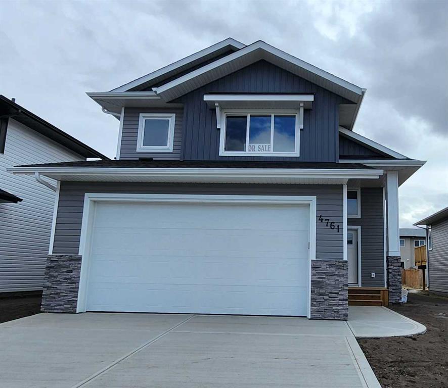 AMAZING QUALITY BUILT MODIFIED BILEVEL NEW BUILD IN THE ASPEN LAKES SUBDIVISION OF BLACKFALDS WITH A S.W. FACING REAR YARD! Stunning Tiled Entry leading to the MAIN LEVEL OPEN PLAN SOUTH FACING Living/Dining/Kitchen with luxury vinyl plank flooring, vaulted ceilings and an Eye-Catching Electric Fireplace with Floor-to-Ceiling Dark Grey Stone Surround. Crisp white linen paint throughout. Impressive and functional DREAM KITCHEN with Dark Coffee Bean Stained Cabinetry/Quartz Countertops/Center Island with Breakfast Bar/Pantry and all Stainless Steel Appliances. The Dining Area adjacent to the Kitchen is a good size with a garden door exit to the SW FACING DECK! Two secondary bedrooms on the main level + 4 pce bath with quartz countertop. Primary Bedroom on the upper level with a magnificent walk-in-closet and 4 Pce Ensuite with quartz countertop and tile floor....... High efficiency furnace, roughed in vac, roughed in basement infloor heat. Basement with 8'6" ft ceilings is open for your personal development.......TAXES NOT YET ASSESSED.....