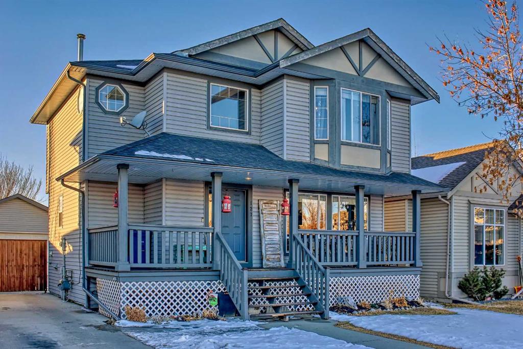 Welcome to this stunning, well-kept 4-bedroom home, where every detail exudes quality and charm. The spacious living room features a cozy gas fireplace surrounded by built-in shelving and an entertainment unit, creating a perfect gathering space. Oversized windows bathe the room in natural light and offer serene views of the full-width traditional front porch. The highly functional kitchen boasts an island and is seamlessly connected to a large dining area, making meal preparation and entertaining a breeze. The main floor laundry room is equipped with custom cabinets, adding both style and convenience to your daily routine. Architectural arches and nooks throughout the home add an attractive touch of character and style. Upstairs, you'll find three bedrooms, including the master suite with a 4-piece ensuite bathroom and walk-in closet. The second and third bedrooms share a spacious "Jack and Jill" bathroom, perfect for families or guests. The lower level is fully developed and offers a family room, fourth bedroom, and another full bathroom, providing ample space for relaxation and entertainment. The oversized heated double detached garage features a concrete drive from front to back, 3-foot concrete curb walls providing approximately 11-foot insulated ceilings with lighting and plugs. The garage is insulated, poly and drywalled and an oversized door for full-size vehicles. Outside, the property boasts attractive landscaping, including a paving stone patio, perfect for outdoor gatherings and enjoying the beautiful surroundings. Close to major amenities, 3 minutes drive to Superstore and Canadian Tire, and a quick access to Highway 2, move in and enjoy all the extras this beautiful and lively home has to offer!