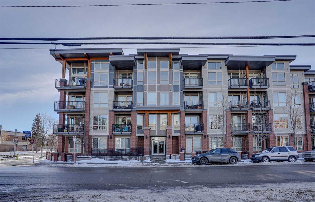 Welcome home to this bright and airy 1 bed+den nestled in Mission! The floor plan offers an open concept with high ceilings and plenty of space. The kitchen boasts quartz countertops, a large island, sleek high-end appliances, contrasting dark and light cabinetry and lots of cupboard space. The living room features large south-facing windows with a mounted air conditioner for the hot summer days! Step onto the spacious balcony perfect for your morning coffee, which has a built-in gas line for the BBQ. The built-in desk allows for integral office space and the in-suite laundry is tucked away. The washroom features a separate shower and soaker tub! The spacious master bedroom features a large walk-in closet and tall windows for the morning sun. The den is currently being used as a second bedroom but can be utilized in many ways. The unit includes titled underground parking with fob access and an assigned storage locker and access to the bike storage room. Mission is a vibrant community with incredible dining, shopping, biking and walking paths. This location cannot be beat as it is minutes from the Elbow River, 17th Ave, and downtown. Book your private showing today!