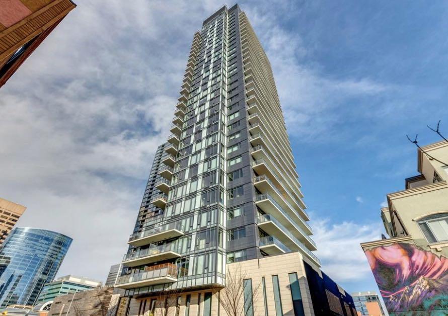 Welcome to this amazing 1 Bedroom plus Den condo in the trendy 6th and Tenth building. A beautiful newer building with Central A/C located in the Heart of the Beltline which is in a prime location for vibrant Downtown Living. Great for owners or investors as short term rentals ( Airbnb ) are ALLOWED! The minute you enter this beautiful 22nd floor property you will be wowed by the sweeping Mountain and City Views through the incredible Floor to Ceiling Windows. The bright and open floor plan boasts exceptional exposed concrete on the 9’ ceiling as well as a feature wall in the bedroom. This concrete framed building offers a bright open living space which consists of a kitchen with stainless steel appliances, including gas cooktop, tile backsplash, stone counters, Engineered Hardwood flooring, and an eat-up island. There is an open den area, which makes the perfect spot for a home office. 4 piece bathroom, In-Suite Laundry, and an expansive Oversized Balcony perfect for entertaining. This building offers an array of amenities, including a sky lounge with an outdoor pool plus terrace area, party room, fitness room, secured bike storage and an executive concierge services. This Unit also includes a titled storage locker & underground parking stall. Enjoy the ultimate lifestyle, with everything you need just a short walk away, including public transit, restaurants, cafes, bars, groceries, +15 access and the downtown core.