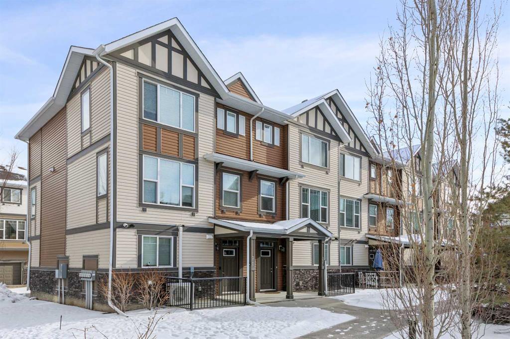 DOUBLE ATTACHED GARAGE | FULL DOUBLE PARKING PAD | EXTRA WINDOWS | GREEN SPACE AREA Welcome to your beautiful TOWNHOME in the upscale community of New Brighton ! This home has everything you or your young family needs. Close to Parks, Schools, South Trail Crossing Shopping, Transit, New Brighton Community Center and Athletic Park with Skating, Water Park, Tennis & more! The front patio area faces a sunny GREEN SPACE and WALKWAY providing the perfect space for your morning coffee. Upon entering you are greeted with a LARGE foyer with TONS of storage, a separate laundry room and access to your attached DOUBLE garage with a full DOUBLE driveway so you have ample parking for your guests. Head upstairs to the second level with bright EXTRA WINDOWS facing south with lofty 9 FT CEILINGS. The spacious bright kitchen features white QUARTZ countertops, extensive cabinetry fit to the ceiling, a pantry and an OVERSIZED 10 FT ISLAND - perfect for entertaining! The dining area provides ample seating space. while the bright living room flows seamlessly onto the covered balcony with a gas line BBQ hookup. Adjacent to the living area, you'll find a handy office nook. A 2-piece guest bath adds extra convenience. Third level is the Master Bedroom with WALK-IN closet and 3pce ENSUITE bathroom. Two additional Bedrooms and another 4pce bathroom complete the upstairs. Don't miss this opportunity to live in this beautiful area. Call for your showing today!