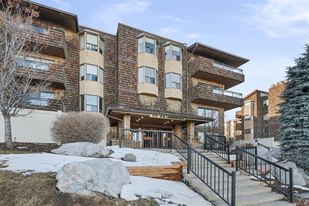 Step into luxury living with this rare gem—a bright and spacious 2 bedroom, 2 full bathroom condo boasting over 1,100 square feet of living space, perfectly complemented with a quaint den/office area, ideal for remote work. Positioned in a coveted south facing orientation, this corner unit offers unparalleled privacy and overlooks a south exposure green space lush and tranquil. Sunlight floods the interior throughout the day, accentuating the airy ambiance and the open layout. With no shared walls, peace and quiet reign supreme, accompanied only by the melodic chirping of birds in the neigbouring vegetation. Entertain with ease in the generously proportioned dining room and living space, where gatherings with loved ones are elevated by the cozy ambiance of the wood-burning fireplace, providing warmth and charm during the cooler seasons. Retreat to the expansive primary suite, effortlessly accommodating a king-sized bed, and indulge in the luxury of a 3-piece ensuite, a sanctuary of comfort and relaxation. Convenience is paramount with included underground heated parking and a secure storage locker, while the availability of fiber optic internet ensures seamless connectivity for work and leisure pursuits. Located in the coveted community of Varsity, this residence offers unparalleled accessibility, directly opposite Market Mall & Safeway, mere minutes from the esteemed U of C and Foothills Hospital. Public transportation at your doorstep facilitates effortless commuting, while the nearby cycling and walking trails of Dale Hodges Park beckon outdoor enthusiasts to explore and unwind. Discover unmatched value in a location that embodies convenience and comfort. Please note, this building imposes an adult restriction of 25+ and does not permit pets, ensuring a tranquil environment for discerning residents. Note this well managed community will be replacing all the windows this year.Book today for you private viewing.