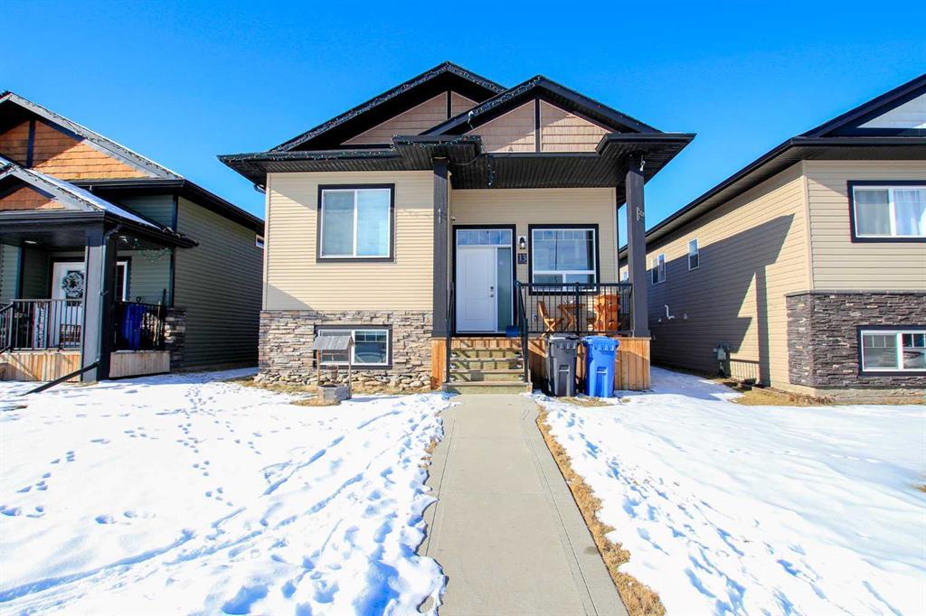 ORIGINAL OWNER HOME ~ 5 BED (3up, 2 down), 3 BATH BI-LEVEL ~ OVER 1150 SQ. FT. ABOVE GRADE PLUS A FULLY FINISHED BASEMENT ~ BACKING ONTO A WALKING PATH ~ Covered front veranda welcomes you and leads to a sun filled foyer with a large picture window and ceilings that open to the upper level ~ Open concept main floor layout complemented by high ceilings and laminate flooring ~ Easily host a large family gathering in the dining room ~ The kitchen offers plenty of dark stained cabinets, ample counter space including an island with an eating bar, full tile backsplash, stainless steel appliances, two windows above the sink overlooking the backyard, a wall pantry and garden door access to the west facing deck and backyard ~ The primary bedroom can easily accommodate a king size bed plus multiple pieces of furniture and offers a 4 piece ensuite ~ 2 additional main floor bedrooms are both a generous size and are separated by the 4 piece main bath ~ The fully finished basement has large above grade windows, high ceilings and operational in floor heating ~ Spacious family room can easily accommodate a sitting area with room for a pool table or play area ~ 2 large basement bedrooms are perfect for teens or guests ~ 4 piece bathroom ~ Laundry is located in the utility room and has built in shelving with additional storage in the crawl space ~ Other great features include; Central vacuum with attachments, new furnace (2024), new hot water tank (2023) ~ The fully fenced backyard has a fenced in dog run, enclosed storage below the deck, has a well established apple tree and access to the rear parking pad with room for at least 2 vehicles ~ Just behind the home is a walking trail that leads to a large treed park with more walking trails and a playground ~ Steps to multiple schools, Penhold Multiplex and Hawkridge Square Shopping plaza with an IGA, restaurants, post office, 2 pharmacies and more ~ Just minutes to South Red Deer