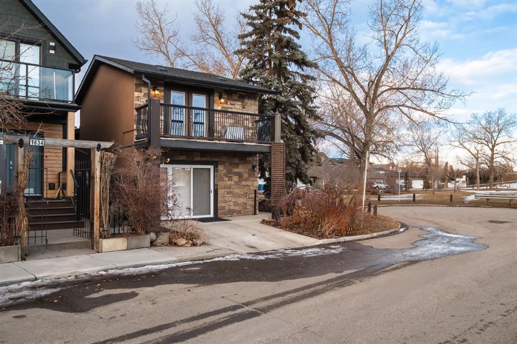 Immerse yourself in a fusion of scenic beauty and urban convenience with this remarkable inner city residence featuring a stunning carriage house, nestled in the charming community of Hillhurst. Siding directly onto an expansive greenspace and located at the end of a cul-de-sac, this updated home offers the perfect retreat for those who cherish nature without straying far from the city. Upon arrival you'll notice the stone faced exterior facade, quaint landscaping and single car driveway. Inside you are greeted by a foyer with a floating credenza and a cozy reading nook with a substantial built-in bookcase and shelving unit. The adjacent flex space has a multifunctional use and is an expression of the characteristically versatile floorplan. Ascend the open riser staircase to access two spacious bedrooms, including the peaceful primary retreat that boasts an extensive built-in closet and a luxuriously tiled ensuite with dual sinks and a standup shower, along with a private balcony overlooking the backyard. On the top floor, cozy up on the south-facing benched window and enjoy a cup of tea while watching the meandering Bow River. The sleek chef's kitchen incorporates high-end Samsung stainless steel appliances, metallic backsplash, and stringer glass upper cabinetry. Immaculately maintained hardwood and dark millwork coupled with panelled ceilings and carefully placed pot lights offer a rustic charm. Carry on through the main living space where you can enjoy the luxurious 3-way stone faced gas fireplace, and take french doors out to an elevated south-facing balcony with captivating downtown views and a gas line for the BBQ. Down in the fully finished basement is a fourth bedroom with a built-in closet, and a 3-piece bathroom with a backlit mirror feature and laundry. The true showstopper of this home is the accompanying carriage house, with a vaulted and beamed ceiling, luxury vinyl plank flooring, multiple built-ins, fully equipped kitchen, and a full bathroom with a shower and backlit mirror. The electrical is also roughed-in for non venting combination washer and dryer, and the space includes a mini-split for individualized temperature control. This bonus studio makes for the perfect nanny suite or home office and adds an impressive layer of luxury, privacy and convenience. The roof on the carriage house is also ideal for solar panel installation as it is south facing with tons of sun exposure. A further advantage in the detached double garage below is a rough-in for electrical vehicle charging. This unique 4-level split is a favourable investment in the ever tranquil community of Hillhurst, with unparalleled proximity to green spaces and the river pathway system. Merely minutes from Kensington Village and with quick access to the Downtown Core, this location is unmatched in its appeal, and this home is truly one of a kind