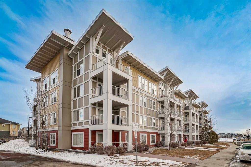 Welcome to the highly coveted LAKE community of Mahogany, where luxury living harmonizes with exceptional amenities. Discover the allure of this 2-bedroom, 2-bathroom CORNER unit, featuring over 900 sq/ft of living space. This residence exemplifies expert design, seamlessly blending character, style, and comfort from the interiors to the lush surroundings. Step into a space illuminated by abundant natural light, pouring through expansive oversized windows. The 9' ceilings and chic vinyl plank floors perfectly enhance the modern aesthetic. The kitchen is a culinary haven with stainless steel appliances, quartz counters, ceiling-reaching cabinets, a stylish backsplash, and a spacious island. The living and dining areas effortlessly flow together, creating an ideal space for entertaining. Adjacent to the living room, a patio door leads to your personal oasis, complete with a gas hookup and a spacious patio for outdoor furniture. Envision summer evenings with the WEST FACING exposure, basking in the sun. The primary bedroom, generously sized and thoughtfully designed, features a walk-in closet and a luxurious 3-piece ensuite with quartz countertops and a roomy shower. A cleverly separated second bedroom adds versatility, perfect for guests, children, or as a dedicated home office. Additional perks include in-suite laundry, a second 4-piece bath, and your personal AIR CONDITIONING unit for warm summer days. Experience the convenience of UNDERGROUND HEATED PARKING, an extra storage locker, and access to a fully equipped fitness studio on the main floor. Mahogany's offerings are unmatched, with serene wetlands, inviting walking paths, and a central park right at your doorstep. Don't miss the chance to embrace this remarkable lifestyle.