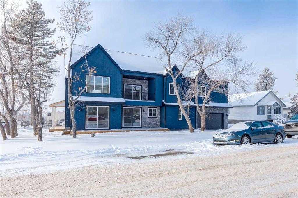 AIRDIE, THE VILLAGE DISTRICT ON CENTRE AVE. This is an opportunity to own a Brand New 2 Storey Modern Ranch Style Home designed by Studio Wolf Designs, 3,548 ft² plus 1,528 ft² basement development in one of Airdries most desirable locations. 6,490 ft2 large corner lot, access to everything you need within walking distance to Airdrie’s the downtown core, restaurants, pharmacy, grocery stores, banks and medical clinics, few blocks away from JENSEN PARK, the PLAINSMEN ARENA & AIRDRIE FARMER'S MARKET. Quick access to Hwy 2 both North and South by direct access via Centre Ave and service road. Main floor is 1,750 ft² with 9’ ceiling throughout, 18’ height rear grand foyer & a Great room with custom design fireplace and surround, gourmet kitchen with walk-in pantry, standing fridge and freezer, Private office, Flex room with a private courtyard, 2 piece bath and oversized double attached front drive garage. Upper floor is 1,798 ft² with 9’ ceiling throughout, overlooks rear foyer and great room vaulted ceilings. Quiet sitting room/library, Total 4 bedrooms, 3 bathrooms upstairs! Large Master bedroom, custom glass shower, his and her sinks, soaker tub, and large walk-in closet. 3 additional bedrooms, two having jack and jill ensuite and one having is own 4pc bathroom. Upper floor laundry and good size BONUS room with covered balcony. Basement fully developed, 9’ ceiling, approx.1,528 ft² with Recreation room, Media room, 5th bedroom, Fitness room with space for sauna (optional), 4pcs bath and Wet Bar area.