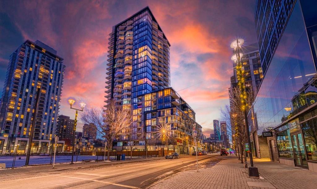 Prepare to be awestruck! Nestled on the 4th floor, this exquisite 2 bed/2 bath residence offers not only breathtaking vistas but also unparalleled seclusion. Crafted by the renowned Cecconi Simone, the design is a testament to luxury living. Step inside to discover an open floor plan, featuring a chef's kitchen equipped with top-of-the-line stainless steel appliances including a ceramic cooktop and wall oven. Adorned with quartz countertops and a grand centre island, the kitchen seamlessly flows into the inviting living room, where floor-to-ceiling windows bathe the space in natural light. Venture outside to the expansive covered balcony and indulge in panoramic views of downtown Calgary, while relishing the perfect blend of indoor-outdoor living. Retreat to the primary bedroom, adorned with oversized windows, and unwind in the 3-piece ensuite bathroom boasting quartz countertops and elegant tiled flooring. A second bedroom, complete with ample closet space, and a well-appointed 4-piece bathroom complete the living quarters. The Verve offers a plethora of amenities including a rooftop patio, owners lounge/social room, conference room, private gym, and an observation deck on the 25th floor, promising unparalleled luxury living in the heart of East Village. With convenient access to the C-train and major attractions like the Stampede grounds and the Calgary Zoo, this is an opportunity not to be missed! See multimedia button for a video or call to book your showing!