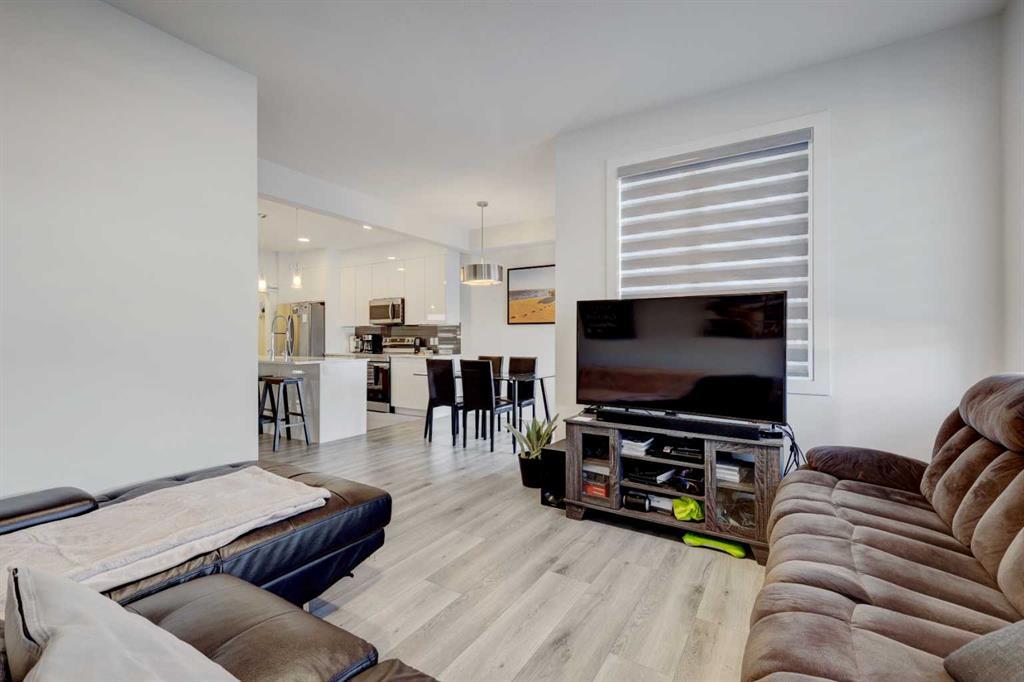 Located in Airdrie's newest Cobblestone Creek community, this good-as-brand new (2022 built); 3 bedrooms; 2.5 bath duplex is readily available for a very quick possession! The wide foyer of this Cayden model duplex home leads to a spacious & seamless living, dining & kitchen with a very functional layout. From the oversized single-attached garage, a mudroom is discreetly enclosed with a simple but elegant barn door that leads to the kitchen.The kitchen has an oversized quartz island & an upgraded 42" cabinet height for ample storage. Not to mention that it also has a separate pantry. The entire main floor flooring is laminated vinyl tile (LVT) for an easy & stress-free maintenance. On the upper level, you would find the laundry room, 2 decent sized- bedrooms, a 4piece shared bath and the wide master bedroom with an ensuite and walk-in closet. Natural daylight brightens up both levels of this duplex home. There is a separate side-entry to the full basement that awaits future development. It has a backyard, too. It is indeed a sanctuary in the peaceful-living Cobblestone Creek community. It is very close to shopping & a few steps to recreational amenities such as the newly opened community pickleball, tennis & basketball courts. Also, it is just a 4-minute drive to the vast 55-acre Chinook Winds Park which offers an abundance of activities for young & old alike to enjoy, where 3 playgrounds, a skate park, spray park, volleyball courts, toboggan hill, ski trail and lots of walking trails are found. Come, appreciate and make this either your first home or investment property.
