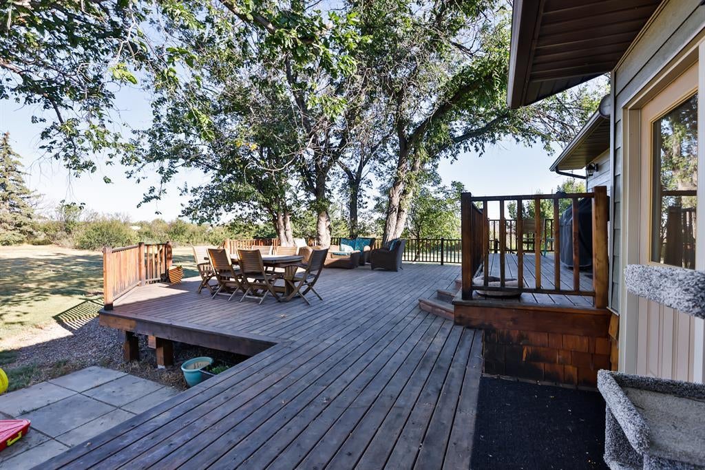 FULLY RENOVATED Acreage living in the small town of Warner. This gorgeous home sits on just over 4 acres and overlooks the Milk River Ridge. This 6 bedroom, 3 bathroom 2000 square foot bungalow has been taken right down to the studs and completely updated! New modern finishes like luxury vinyl plank flooring, titanium granite countertops, beautiful light fixtures, and the stunning mill work around the fireplace make this home a MUST see. The open concept main floor features a beautiful kitchen with new stainless steel appliances, a huge 9’x4’ island, custom kitchen cabinets to the ceiling with soft close cupboards and drawers, under cabinet lighting, and a double under mount Silgranit sink. The kitchen also features a barn door that leads in to a cute walk into the Butler’s pantry with coffee station. No detail has been overlooked in this very well laid out home. The main floor also features the Primary bedroom with a large walk in closet and ensuite with a custom tiled shower. This room overlooks the well manicured backyard with plenty of trees. Just off the garage you will find a custom mudroom with extra storage and a main floor laundry room. Up a few stairs is another neat bedroom with it’s own balcony overlooking the backyard. The huge basement has room for everything, 3 large bedrooms, a bathroom, and a great size rec space with a tv room, and a games area too! Outside is a double attached heated garage with extra storage space. They have put all 4 acres of this beautiful property to good use, with a large fenced in pasture for animals, a great fire pit area, a garden, fruit trees, a kids play structure, and a chicken coop! There are three outbuildings. Past the tree line you will see another 2 acres. You’ll love the huge back deck that has been built around 3 incredible, mature trees, creating a lovely canopy, with all the shade on a hot Summer day! There has also been 500 feet of chain link fence just added with 10' access gate and 4' man gate. This property really is the best of both worlds, acreage living, but on municipal water and sewer, located just 2 blocks from the school and many amenities including a grocery store. Pride of ownership is an understatement here, this property has been transformed in to an immaculate oasis that you need to come and see! Call your Realtor today!