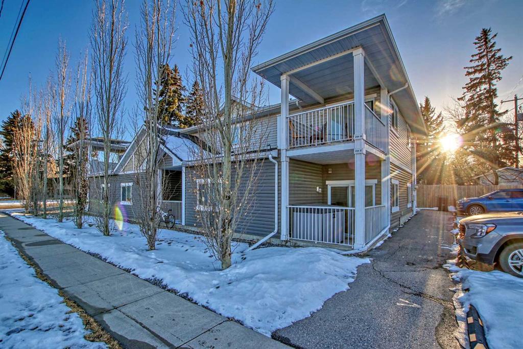 Affordable Housing. Private Deck. Corner Unit. Welcome to this spacious 3 bedroom, 2 bath condo located within walking distance to the downtown core. This modern walk-up apartment boasts acid washed CONCRETE floors with cozy IN-FLOOR HEAT; generous size living room; chef friendly kitchen featuring granite counters & stainless steel appliances; good size master bedroom with ENSUITE BATH; 2 children's bedrooms; full family bath; insuite laundry and separate insuite storage room. Other special features include composite finished balcony off the dining nook; SILENT WALL system; electrified asphalt parking stall; xeriscaped common property for minimal maintenance and low condo fees. This location has immediate access to Sacred Heart Academy and just a block to the park, ball diamonds, Town Lake.