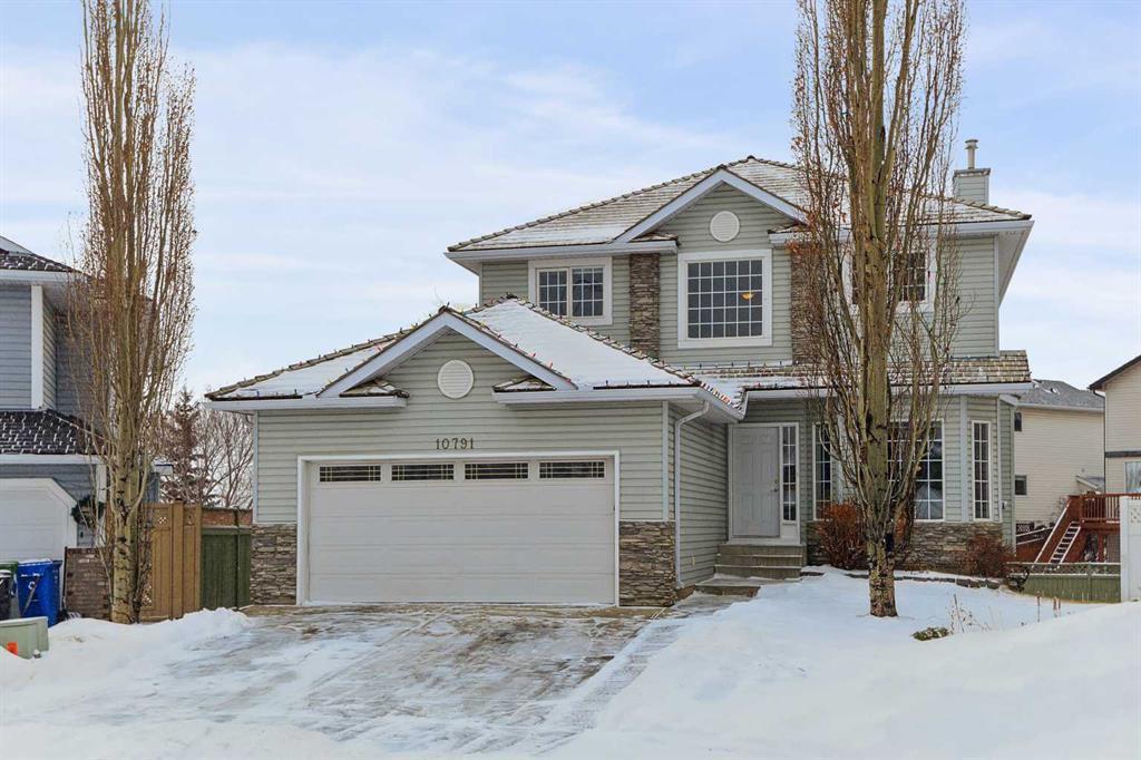 Welcome to this well maintained home on a quiet cul de sac featuring 3281 sq ft of total developed living space, including a walk-out basement with a mature treed large 7169 sq ft pie lot located on a great street where homes rarely come up for sale in the heart of Valley Ridge near the bus route, Bow River Pathway, green space and Valley Ridge Golf Club. The main level greets you with hardwood flooring and a grand foyer high ceiling entrance that highlights the superior architecture of this home. The well laid out family/dining room is ideal for large family gatherings, that connects seamlessly to the kitchen and an open concept layout to the large living room with a gas fireplace feature wall. Adjacent you'll find a large enclosed executive office, half bathroom and laundry room. Step into the SUNNY SOUTH facing backyard and enjoy the well manicured outdoor space with mature trees, a large deck and an oversized yard that is tough to find - if you are an outdoor person or have a large family then you will love this yard! The impressive staircase to the upper level leads you into a huge primary bedroom that includes a walk-in closet and an area that can easily fit all of your large furniture. The primary bedroom 5 piece ensuite bathroom features a deep soaker tub, shower and a large dual sink vanity. The spacious 2nd and 3rd bedrooms upstairs are conveniently located across from a 4 piece full bathroom. The fully developed walk-out basement features two more bedrooms to make 5 bedrooms total, another full bathroom, and an entertainment space with a wet bar. It's refreshing to see a property with a large pie lot and such a great location that has been so well loved - this one must be viewed to fully appreciate how great it is!