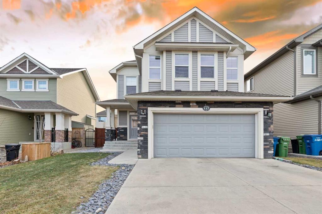 Very unique floor plan with office/bedroom on main floor. Built by Genesis, this property is a rare Bella Vista model, having extra square footage with over 2000 sq ft above grade, & contains over $50,000 in upgrades. Wired for sound, the open plan lends itself for entertaining with hardwood floors & a kitchen with granite countertops, raised breakfast bar, pendant lights, stainless steel appliances, glass tile backsplash & under-cabinet lighting. The living room is anchored by an impressive fireplace with custom stone surround & custom mantle & through a door is a private den which can be used as a bedroom as well. The dining room looks onto the outdoor living space with custom deck & outdoor speaker system. The second level has a master retreat with 4 pc en-suite bath & adjoining walk-in closet. 2 good sized bedrooms, a 4 pc main bath & second level laundry room are on this level. The bonus room has a vaulted ceiling and ceiling speaker system. The included blinds are valued at over $11,000 & this is one of the only residences in Airdrie with a fire suppression system. Directions: