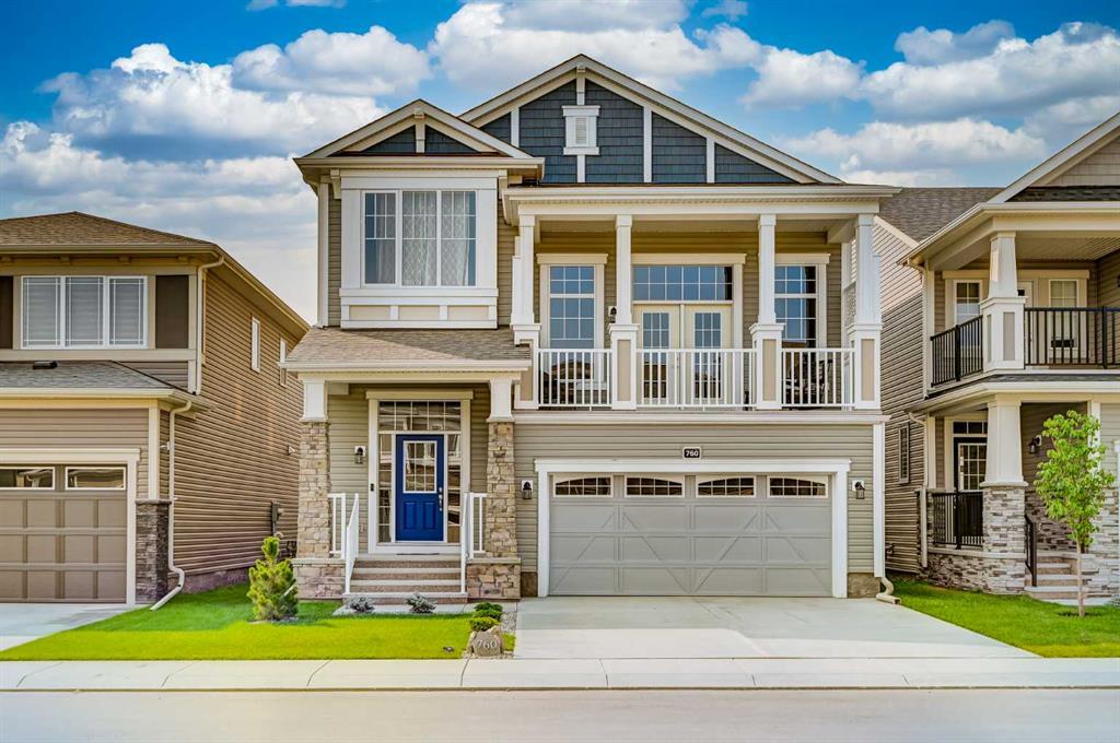 Rare opportunity to own this highly sought-after floorplan (The Pearl) with nearly 3200 square feet of developed living space. Driving up to this home, you will immediately be drawn to its lovely curb appeal. With a large front balcony, you can watch the kids ride their bikes while enjoying a morning coffee. Walking inside, the neutral colour palette and rich engineered hardwood flooring accentuate the natural light that flows throughout this home. A stone surround fireplace and accent windows highlight the elegant living room. The designer kitchen has no expense spared with a central navy island, full-height cabinetry, gold hardware, quality Kitchen Aid appliances, and a massive pantry. The dining space can easily accommodate guests for special occasions with a door that leads out to the SOUTH backyard. Heading to the next level of this home is where you'll discover one of my favourite rooms. A soaring ceiling and a wall of windows with doors that lead out to the peaceful balcony is where you'll find the bonus room that is the hub of the home. The area flows together freely with updated railings in place of stub walls. Upstairs you'll find the spacious primary suite with dual walk-in closets and a luxurious ensuite with an oversized shower. Two additional bedrooms, (each with ample closet space) and a 4-piece bath complete this level. The basement was fully developed by the builder with all required permits. A large rec room, a 4th bedroom, a 4 piece bath, and storage round out the basement. The fully fenced and landscaped backyard has a fantastic pergola for summer nights. Excellent location, close to schools, shopping, and easy access to Highway 2. Additional updates include top-of-the-line window coverings, modern light fixtures, central air-conditioning, high-efficiency furnace & hot water tank, Ecobee thermostat, a humidifier and HRV system.